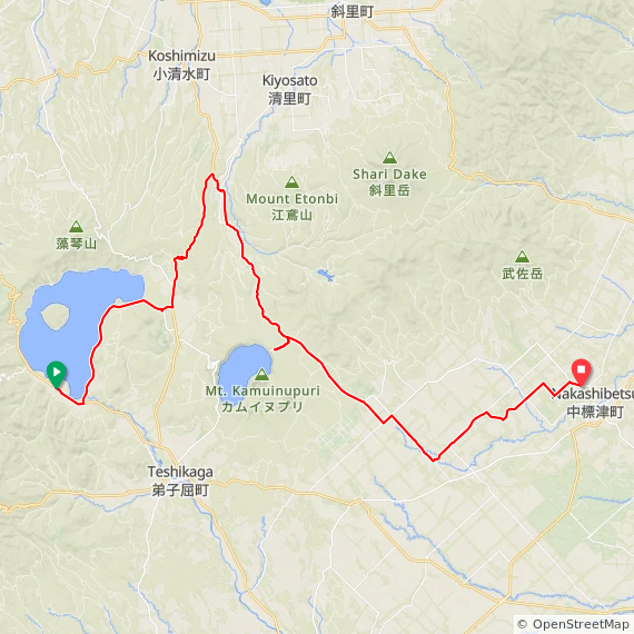 101.1 km, +975 m. Bike ride in 弟子屈町, 北海