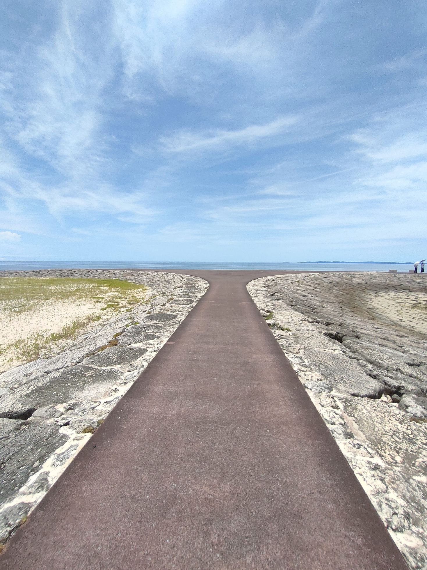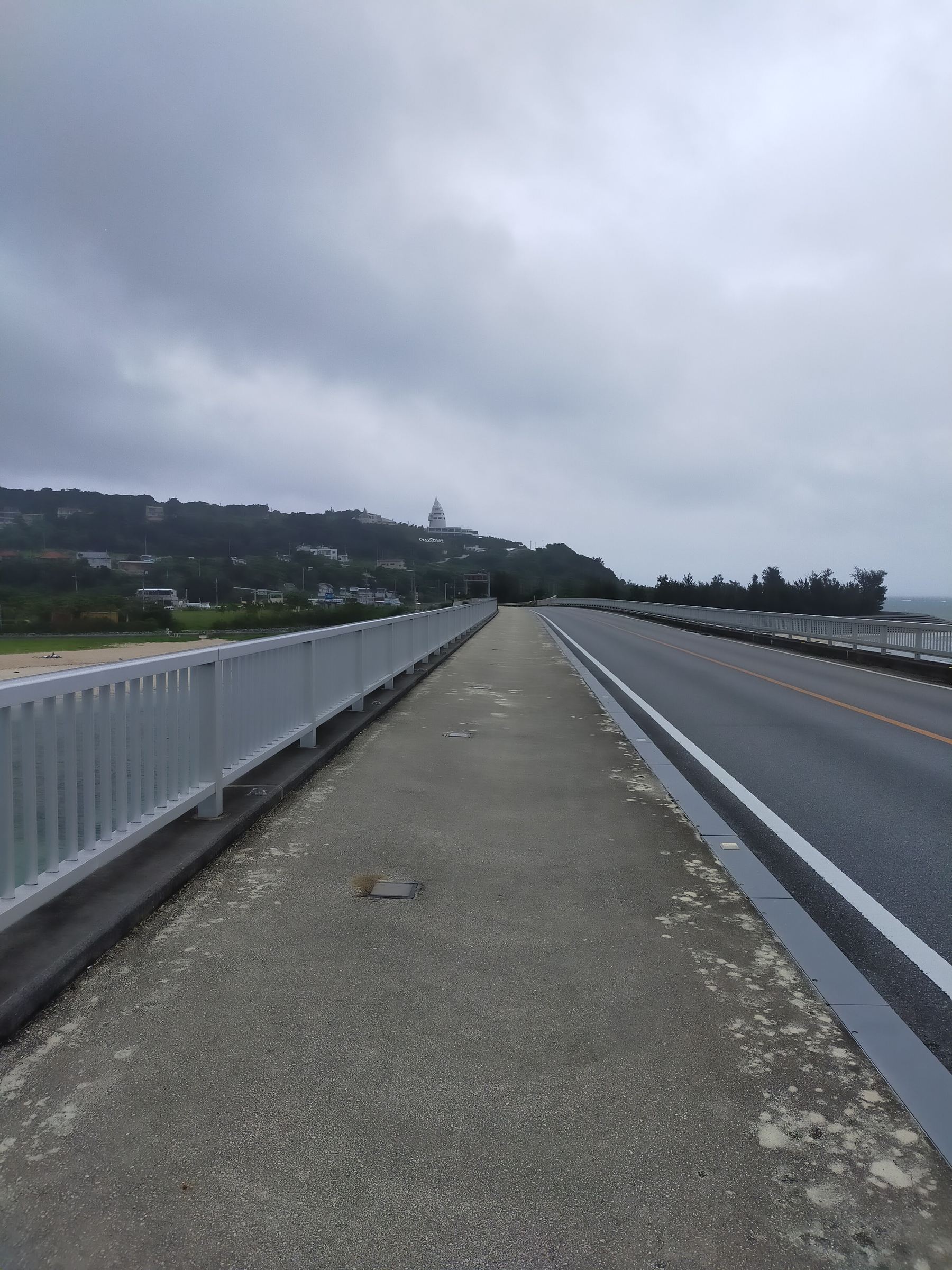 古宇利大橋と同様、歩道がありますし、ロードバイクが走行するに向いている、海が美しく、爽快な場所です。