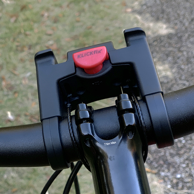 (言葉では説明しづらいですが、RIXEN KAULのアダプタは、結局、金属製のワイヤーがステムとハンドルバーに引っかかり、アダプタを吊るしている構造です。そのため、樹脂パーツとは思えないくらい、耐荷重が高くなるのです。)