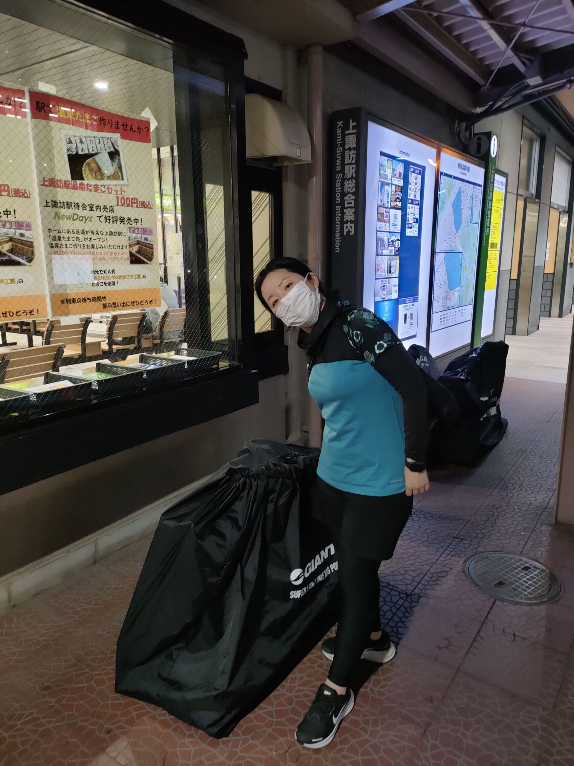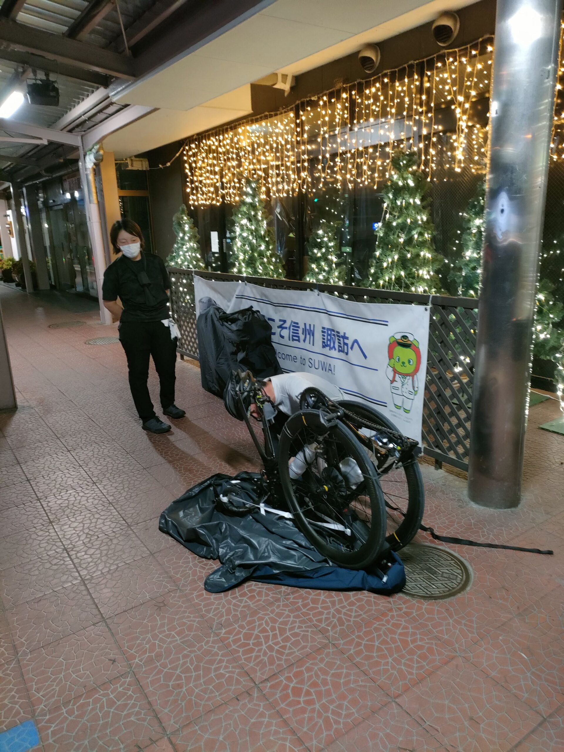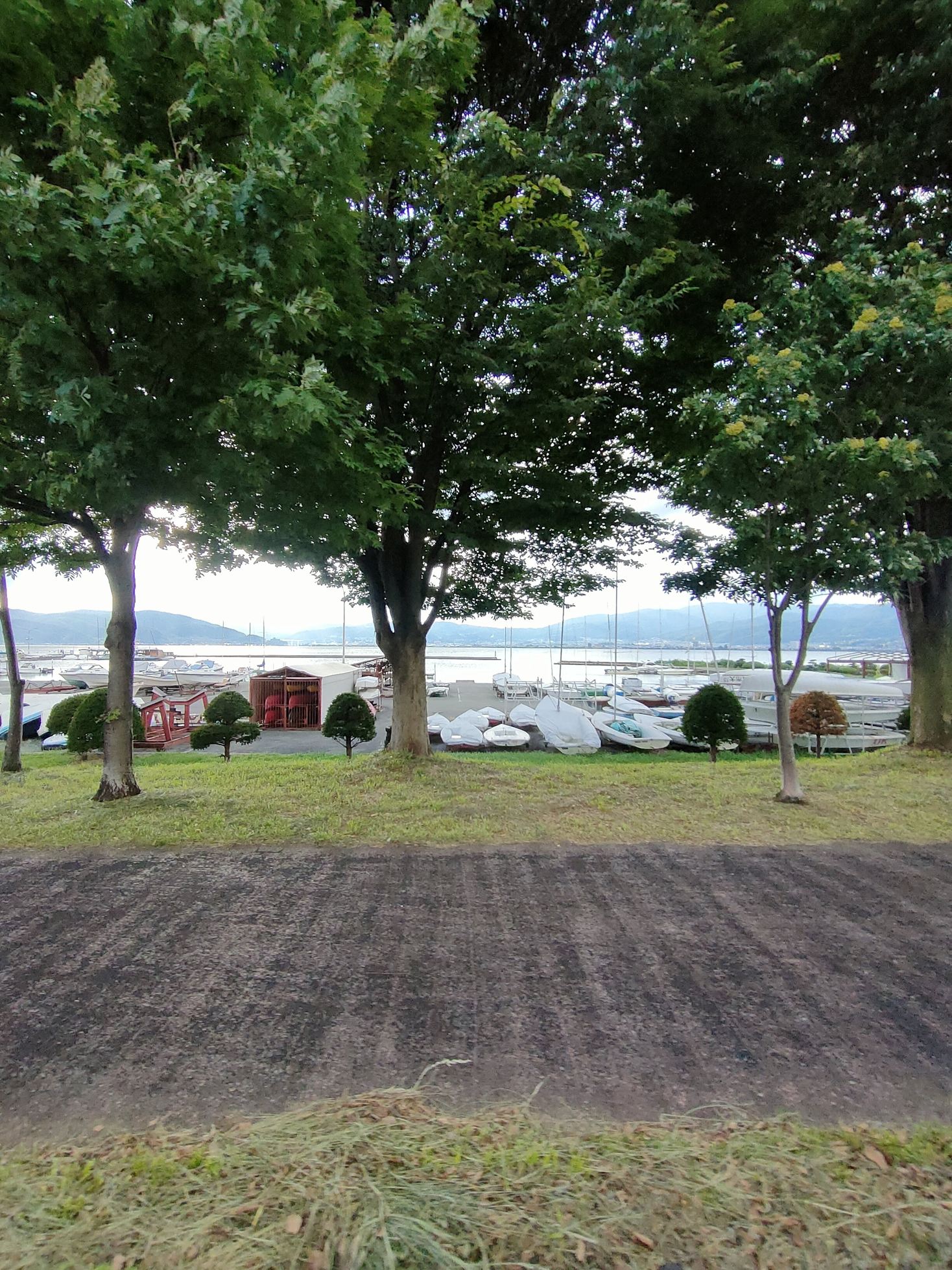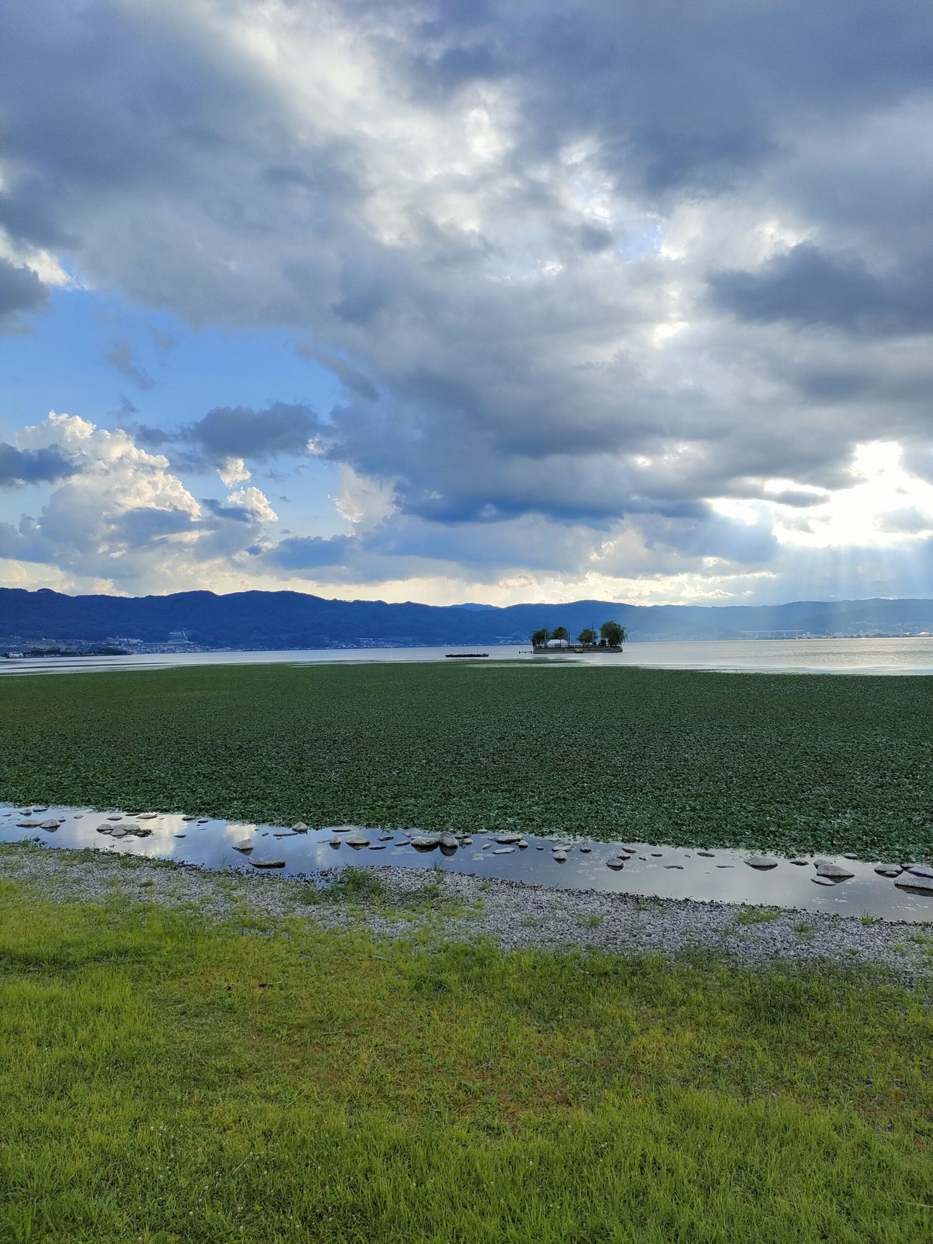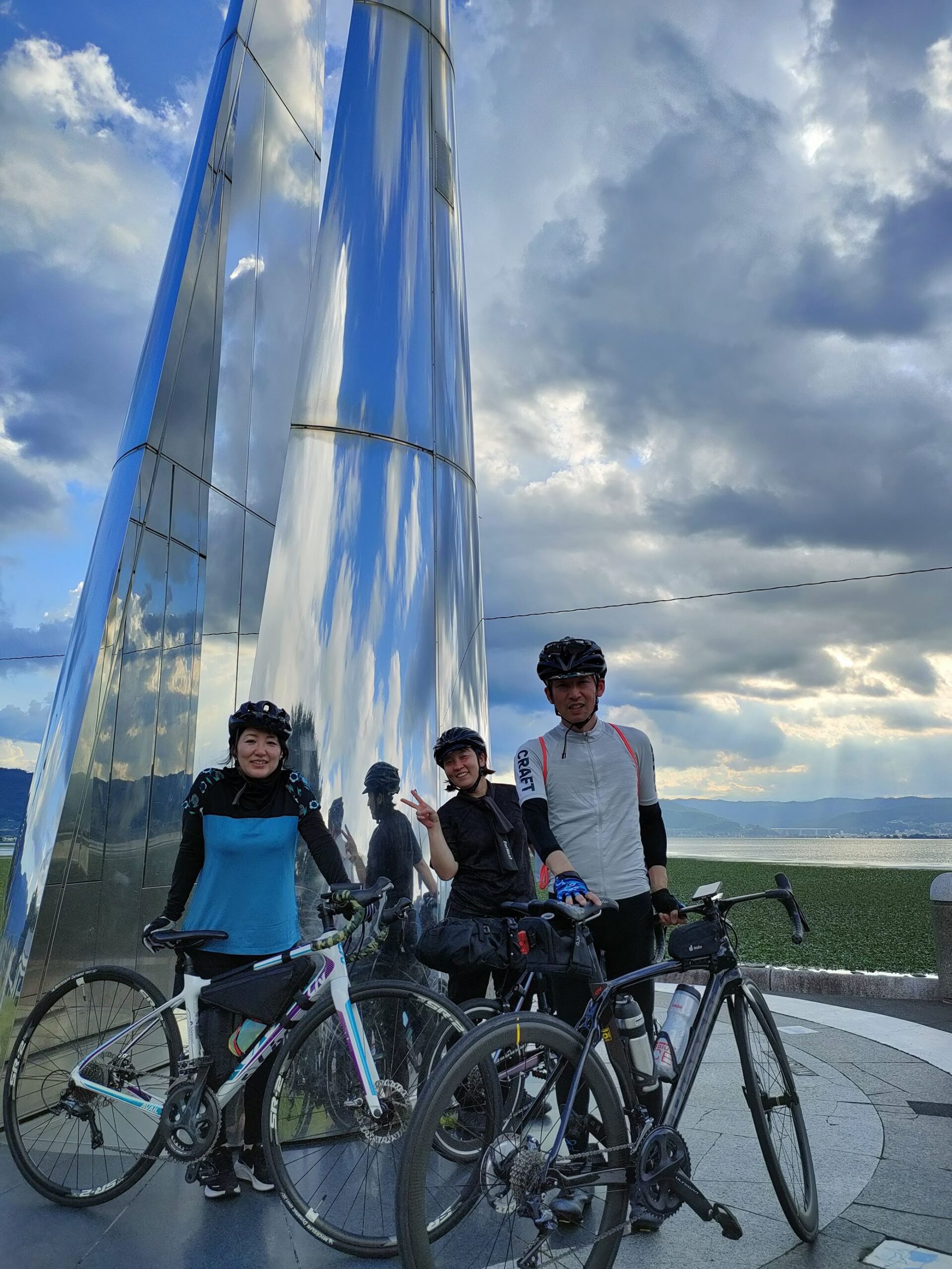 甲府から出発して、70kmほど、諏訪湖に到着しました!!