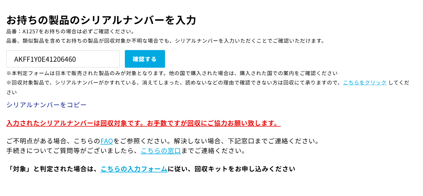 何気なくAmazonの注文履歴を見ておりますと、製品回収の手続きをしてください、という表示がありました。