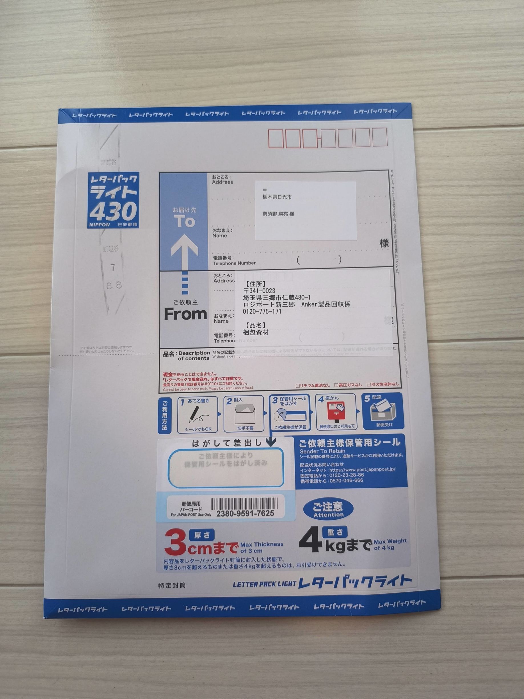 そして、Ankerが回収キットにそのレターパックを採用しているということは、ポスト投函を当然の前提と受け入れている、と解せざるを得ません。