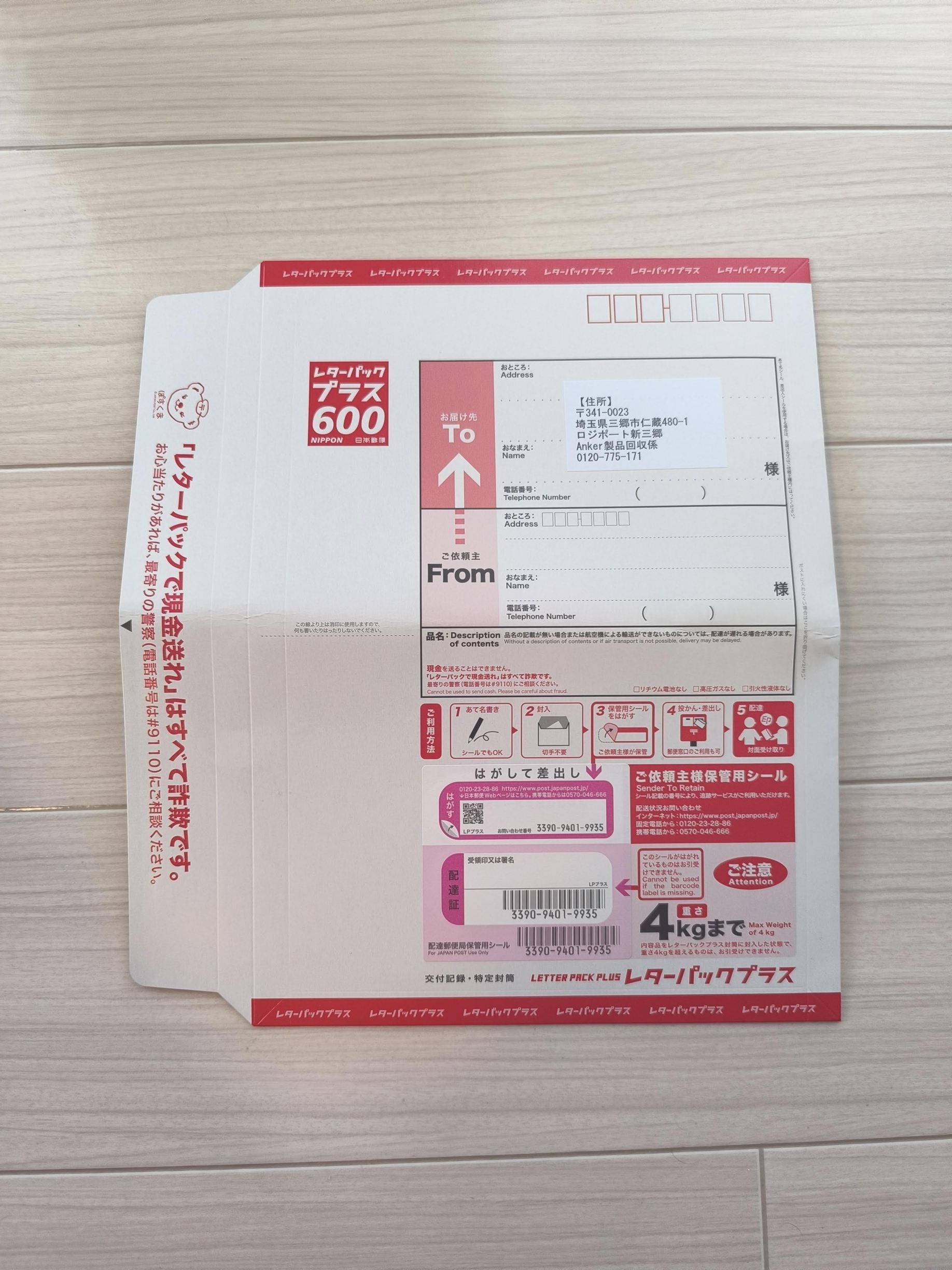 Ankerが通常のレターパックではなく、レターパックプラスを採用しているのは、集荷依頼を前提にしているのだ、と善解することもできましょう。