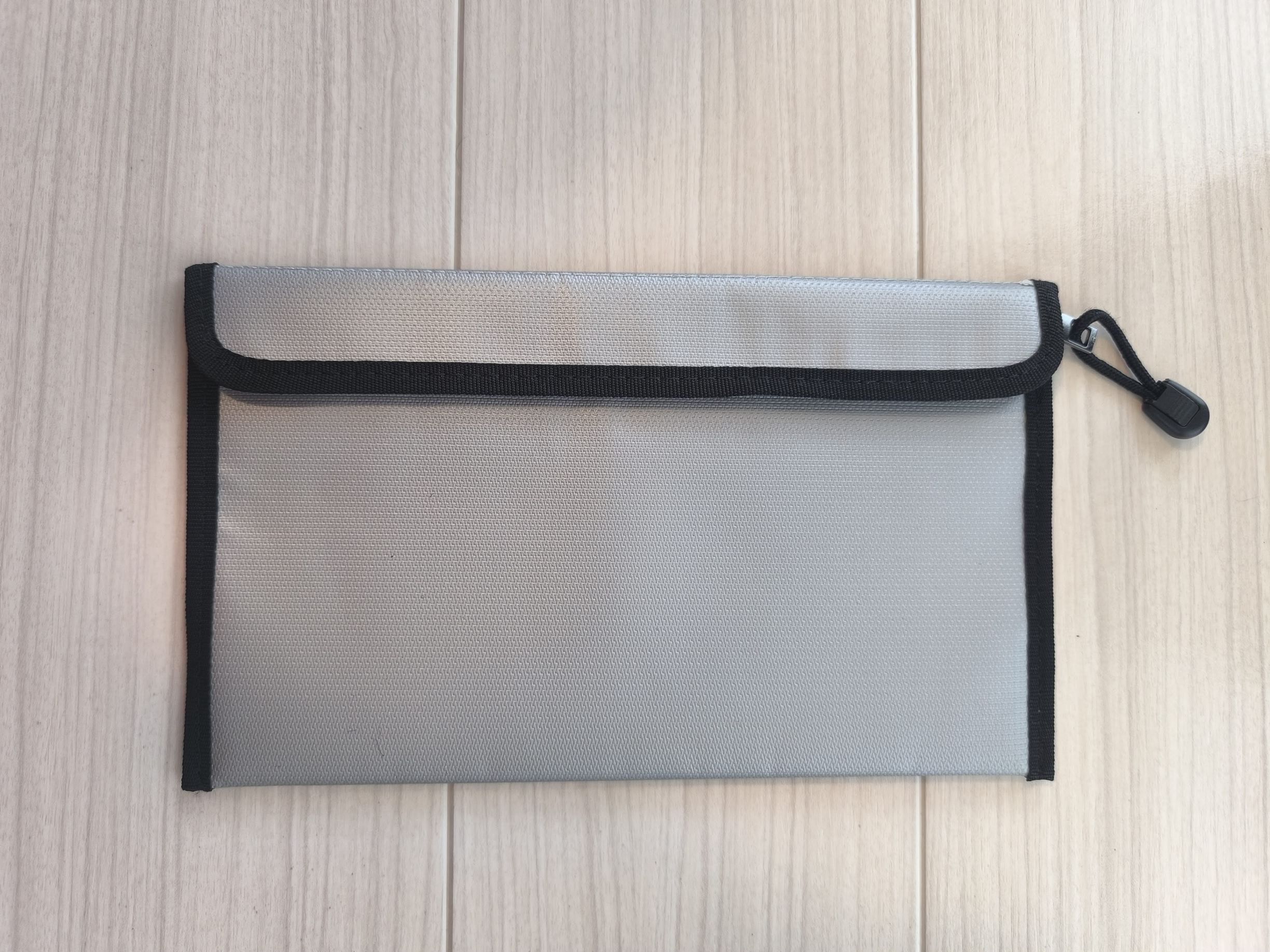 耐火バッグにモバイルバッテリを入れます。