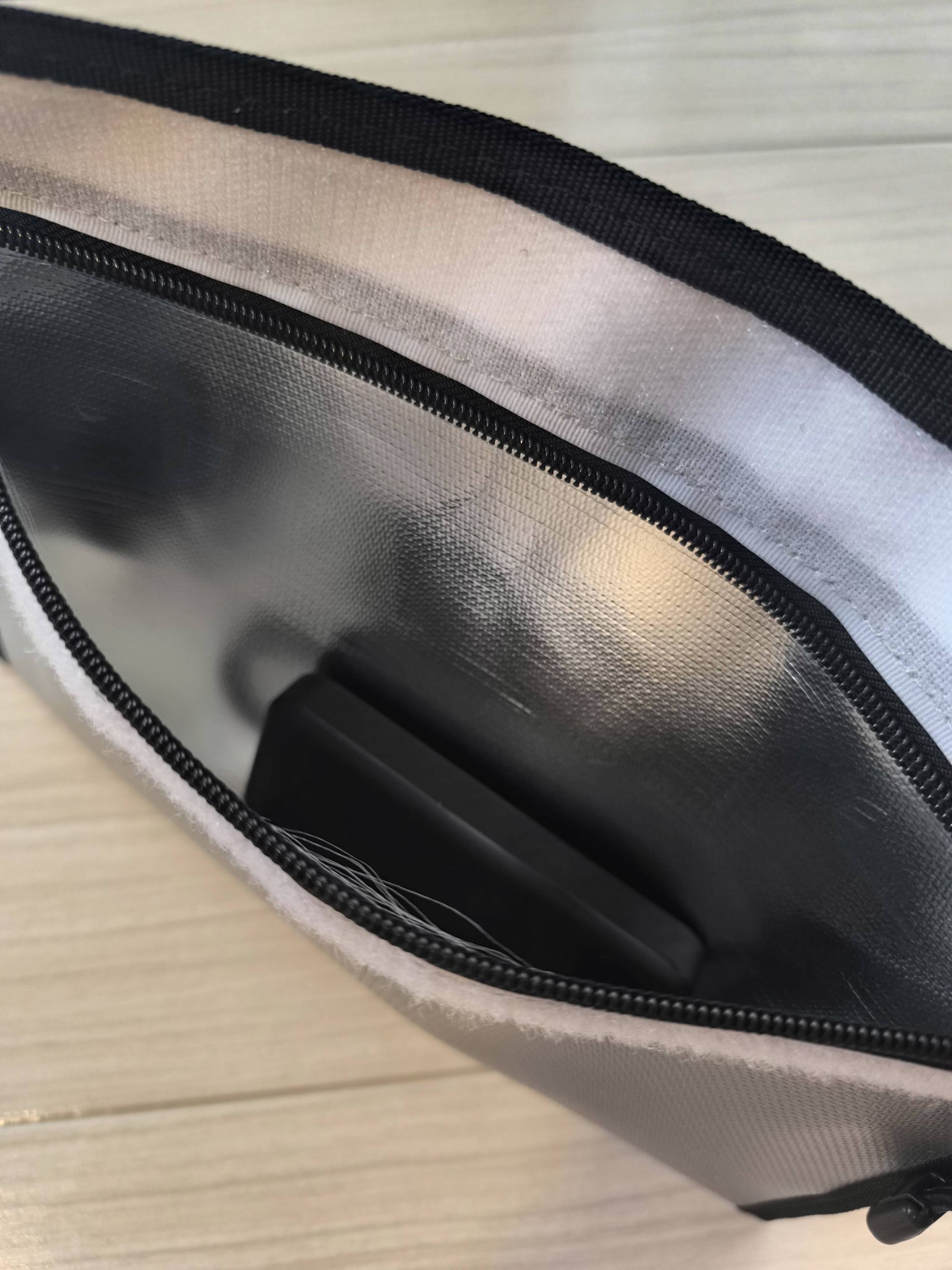 耐火バッグはかなり分厚く、内部にはアルミコーティングも施されています。