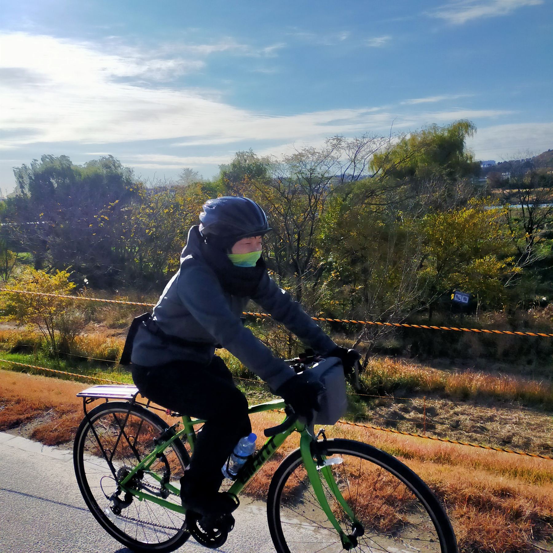 多摩川はガッチリとしたサイクリングロードが整備されているため、安心です。