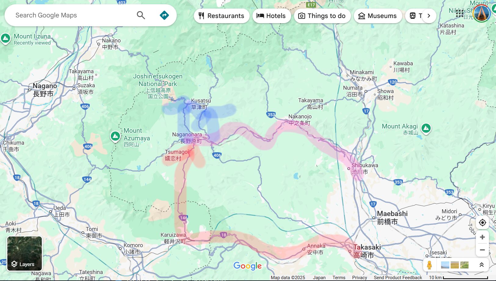 (本稿では、関東地方から草津温泉への行きたかを主に述べます。)