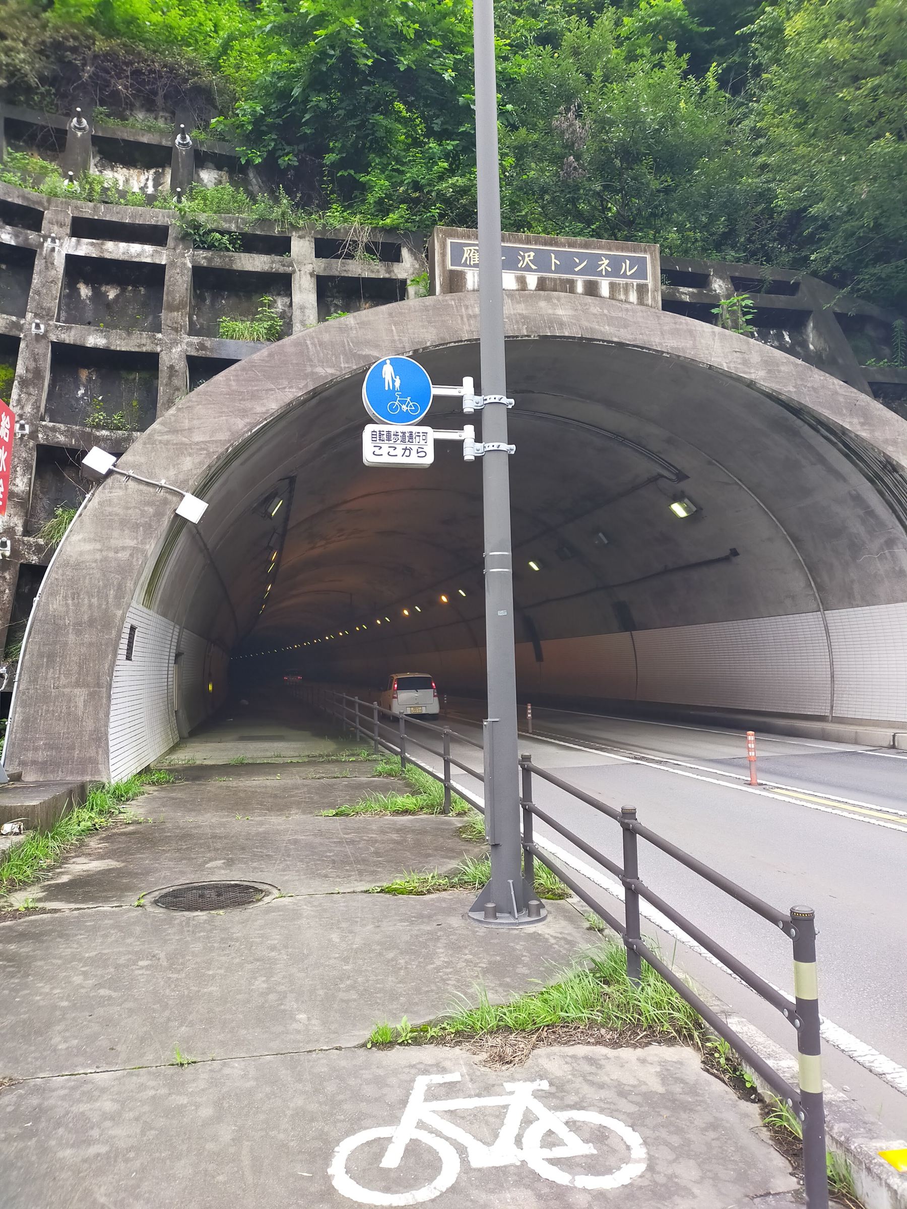 長大なトンネル。歩道があるのが救いです。歩道を通過したほうが安全と思われます。