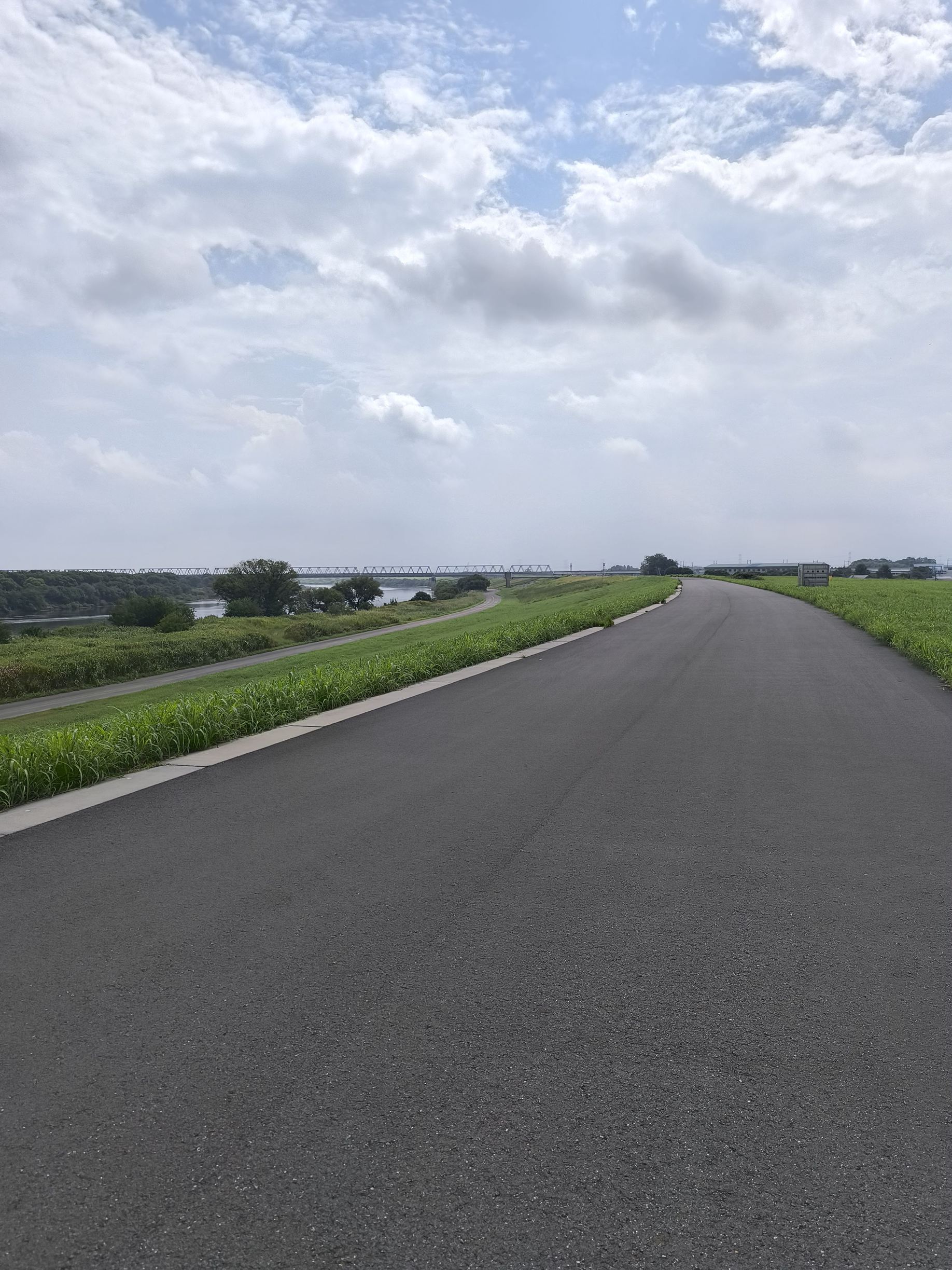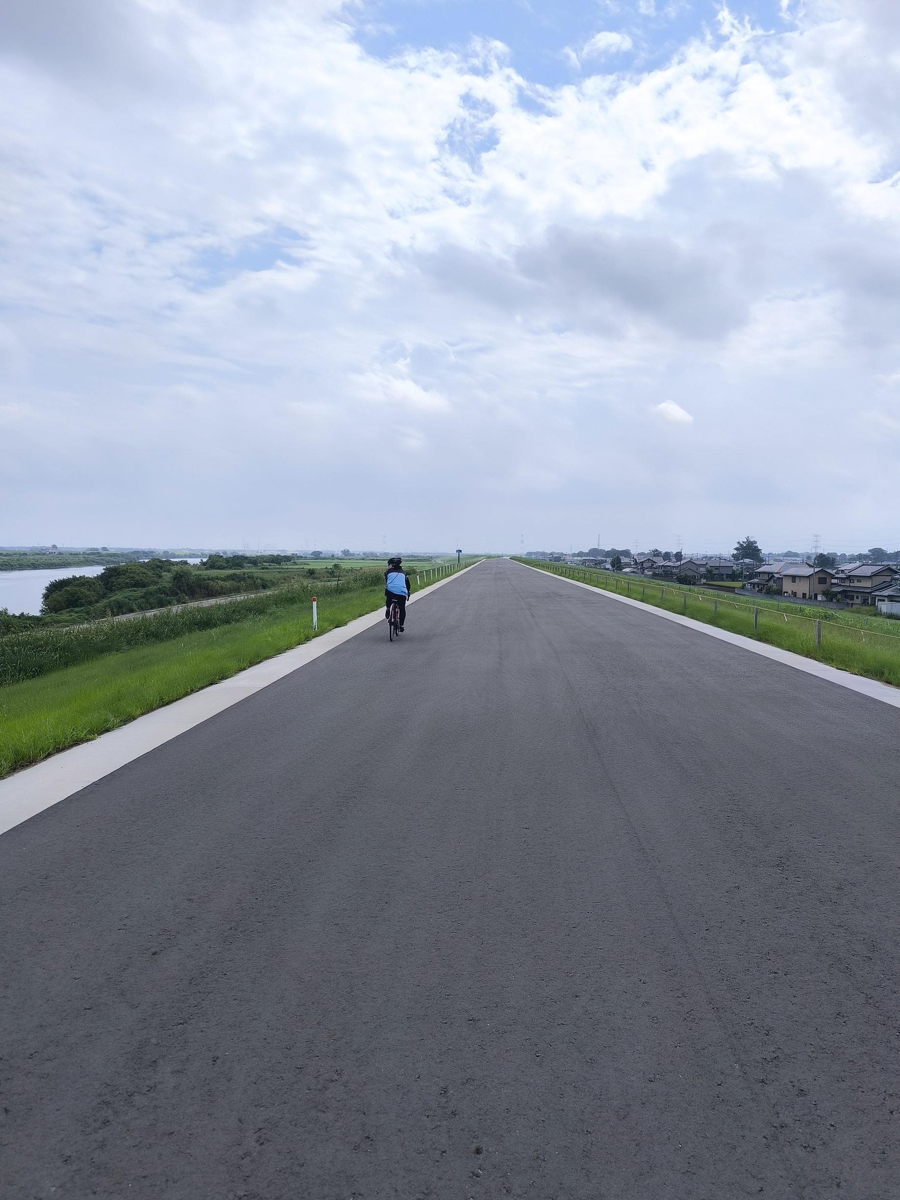 江戸川サイクリングロードはとんでもない直線路が続きます。