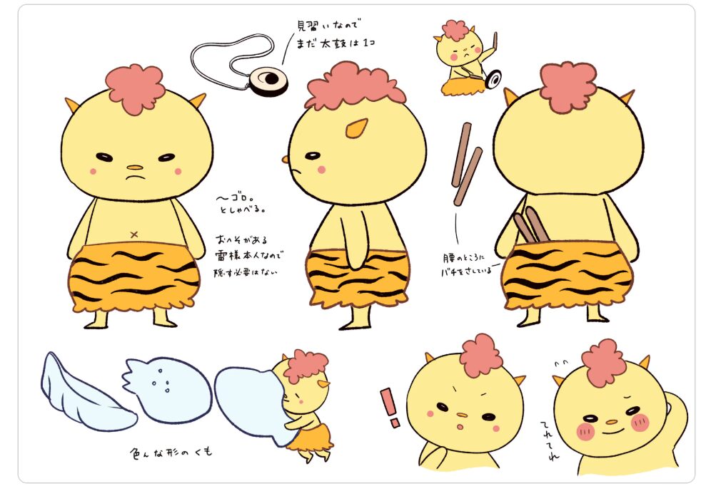 2022年に生まれた雷神様の見習いで、雷雨のときの注意を啓蒙してくださる存在です。