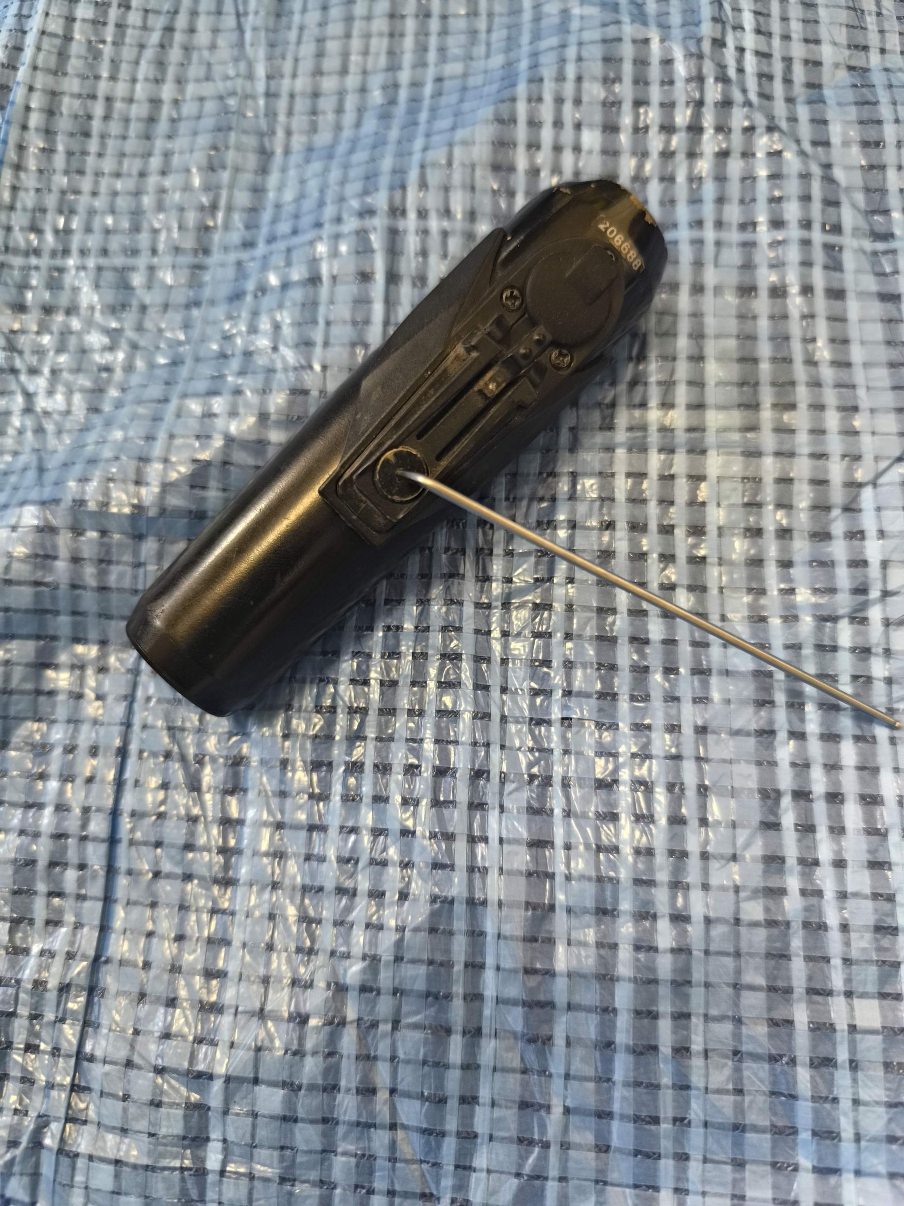 新品のものは、トンガリが鋭く、カチッとブラケットに固定されます。
