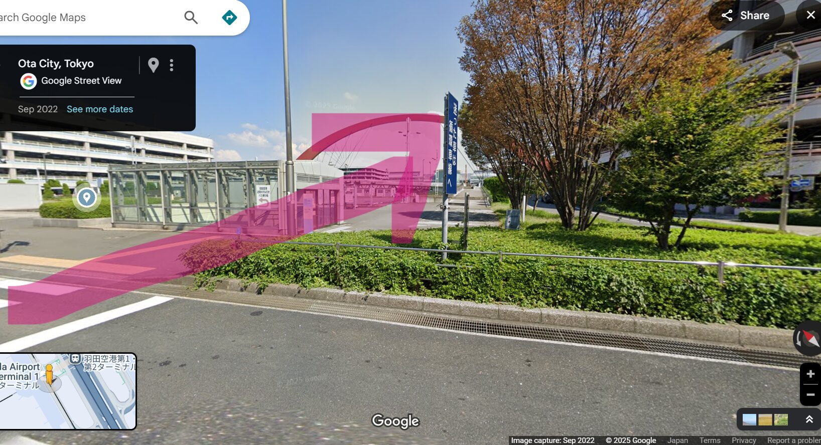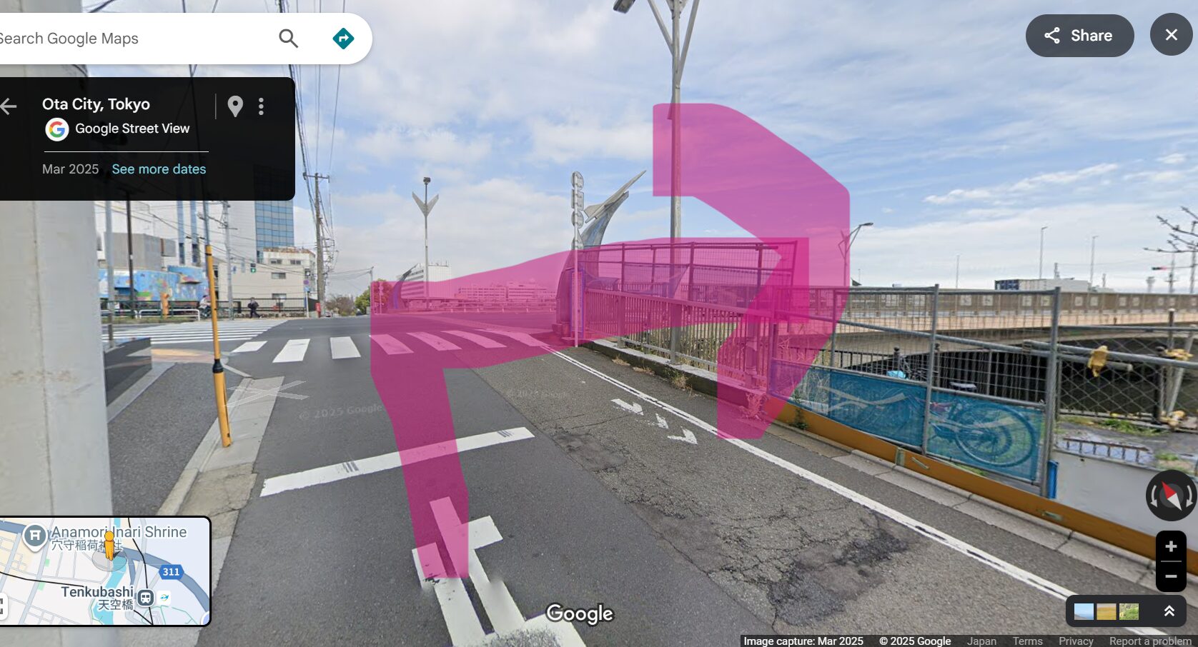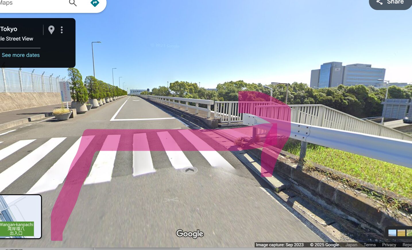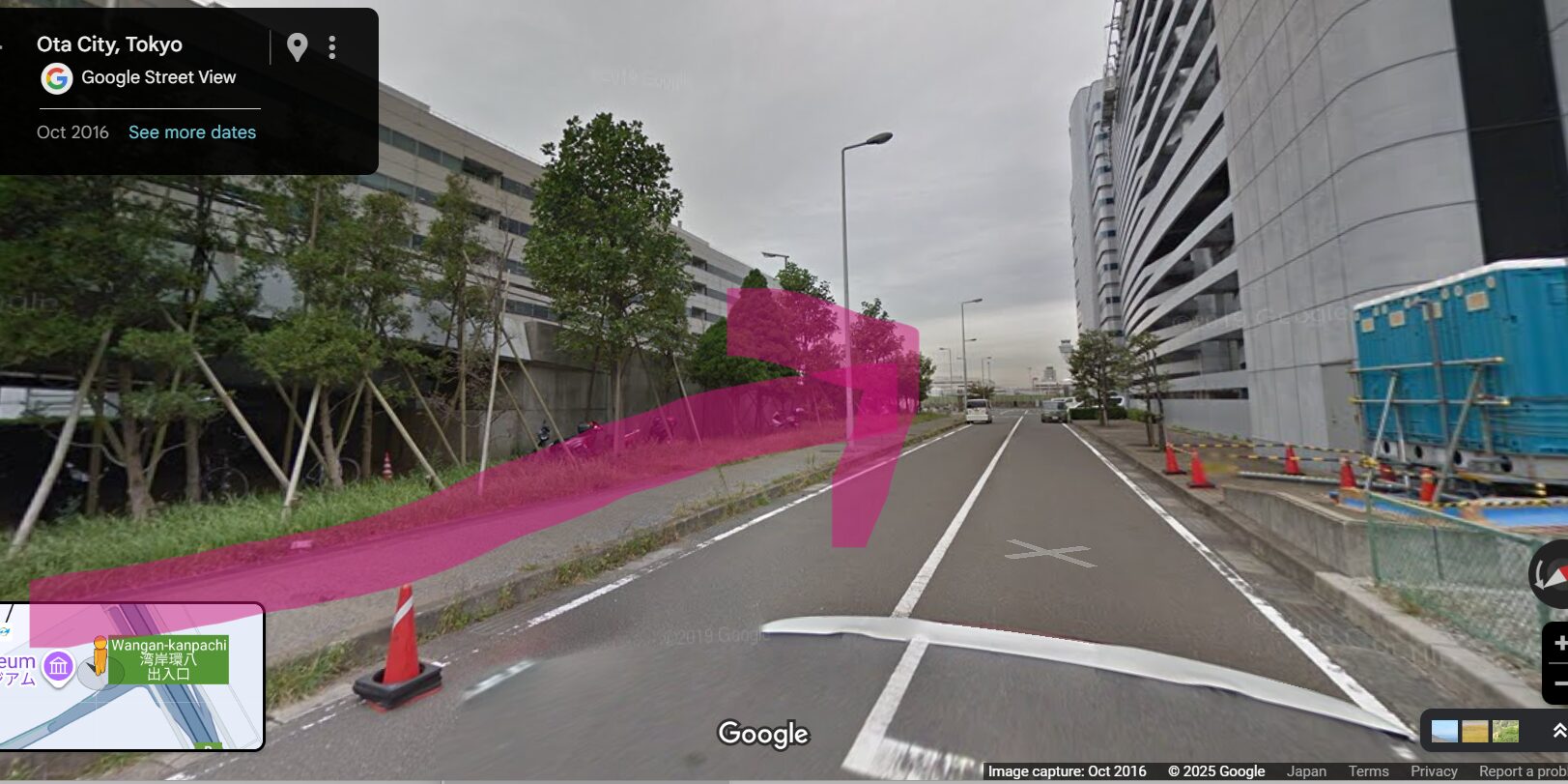 (都道311号線は、東西方向で一方通行となっているため、南側車線を羽田空港に向かって走るのは逆走となります。)