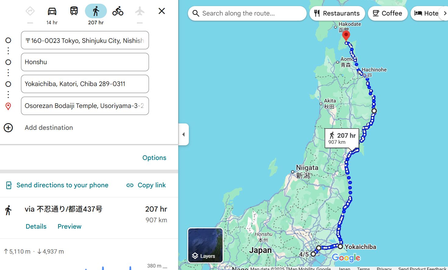 もはやここまで来ると、恐山が目的なのか、恐山に行くまでが目的なのか分からなくなってきますが、日本海側を走る、というルートが考えられます。