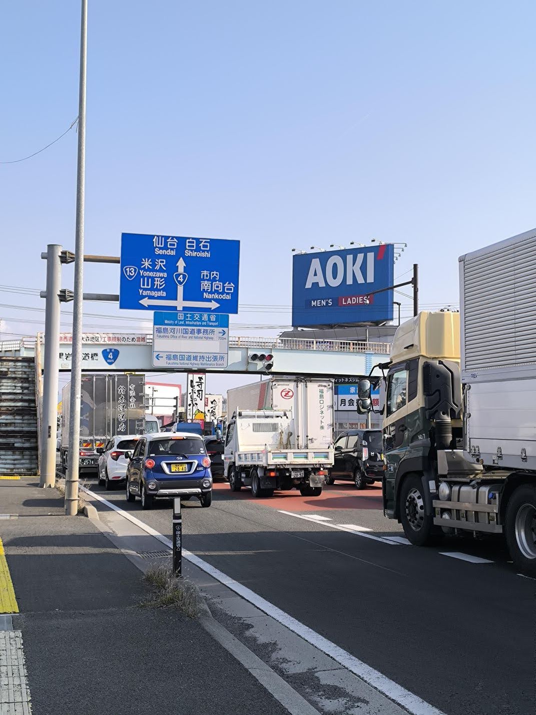 まず、国道4号線は我が国でも有数の大動脈、とにかくクルマの量が多いです。