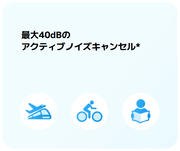 40dBという性能で、その数字がどのようなものか分かりませんでしたが、早速近所のスーパーで使ってみましたものの、ノイズキャンセリングをオンにした瞬間に、サッと静寂に包まれました。