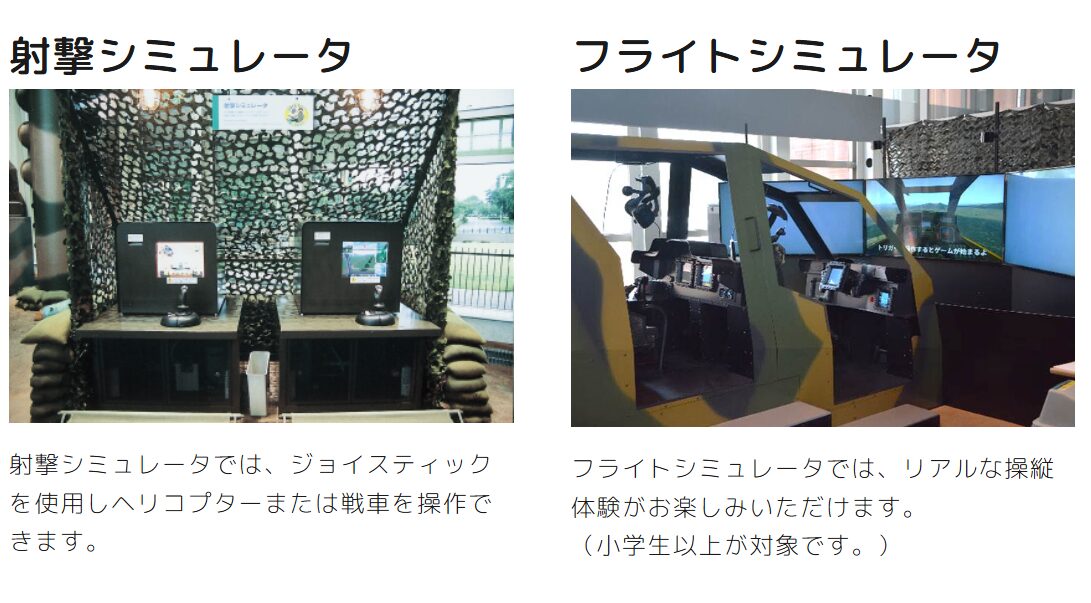 各種装備を拝見、射撃シミュレータ、フライトシミュレーターを体験することができます。