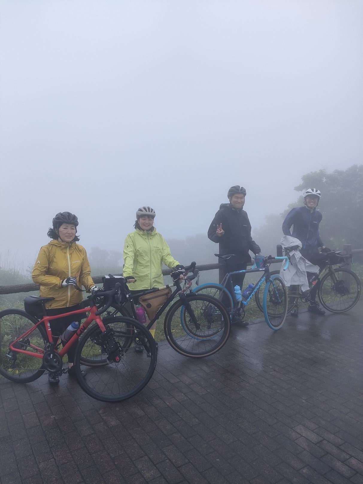 しかし、ご参加くださったお客様は歴戦の勇士で、雨であろうと万全の体制でヒルクライムが可能なのです。