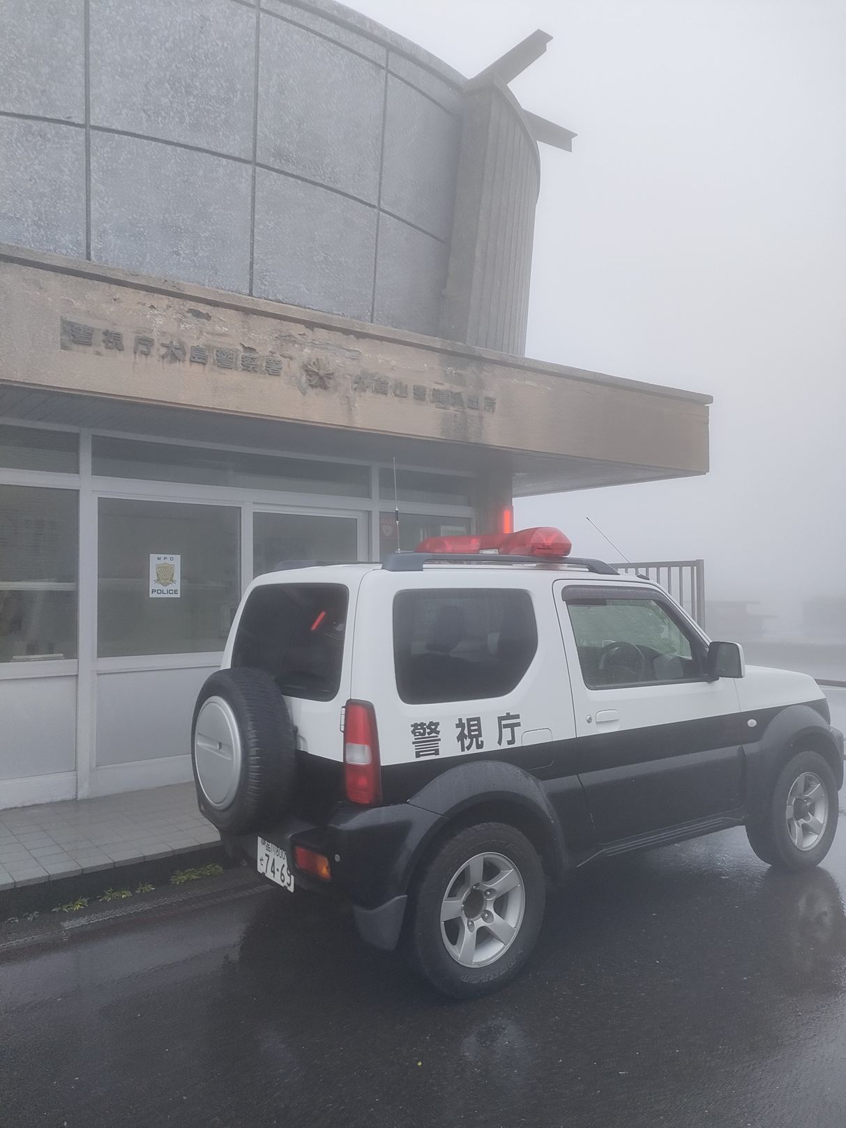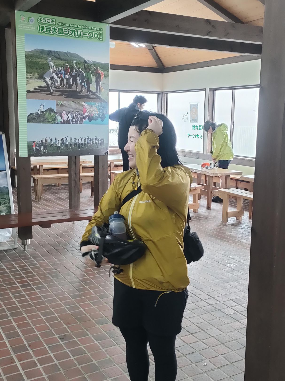 頂上の休憩所で少し雨宿りすることに致しました。