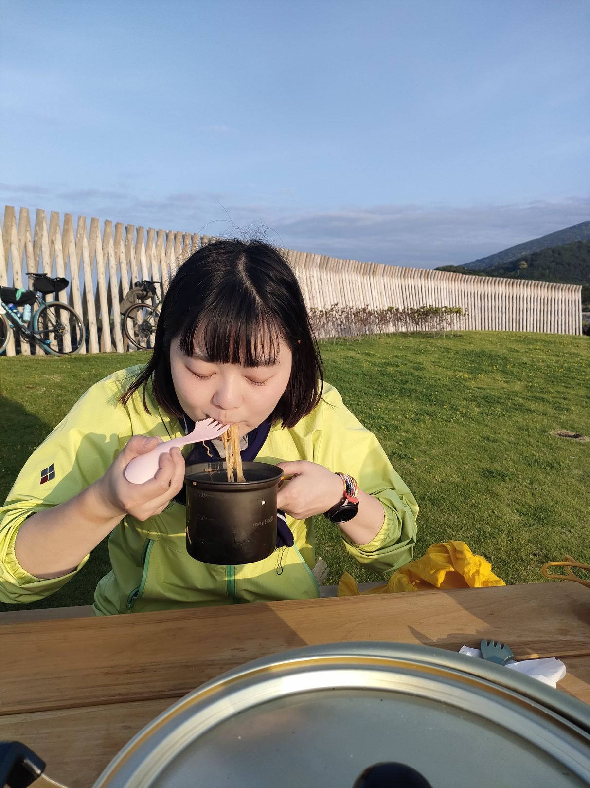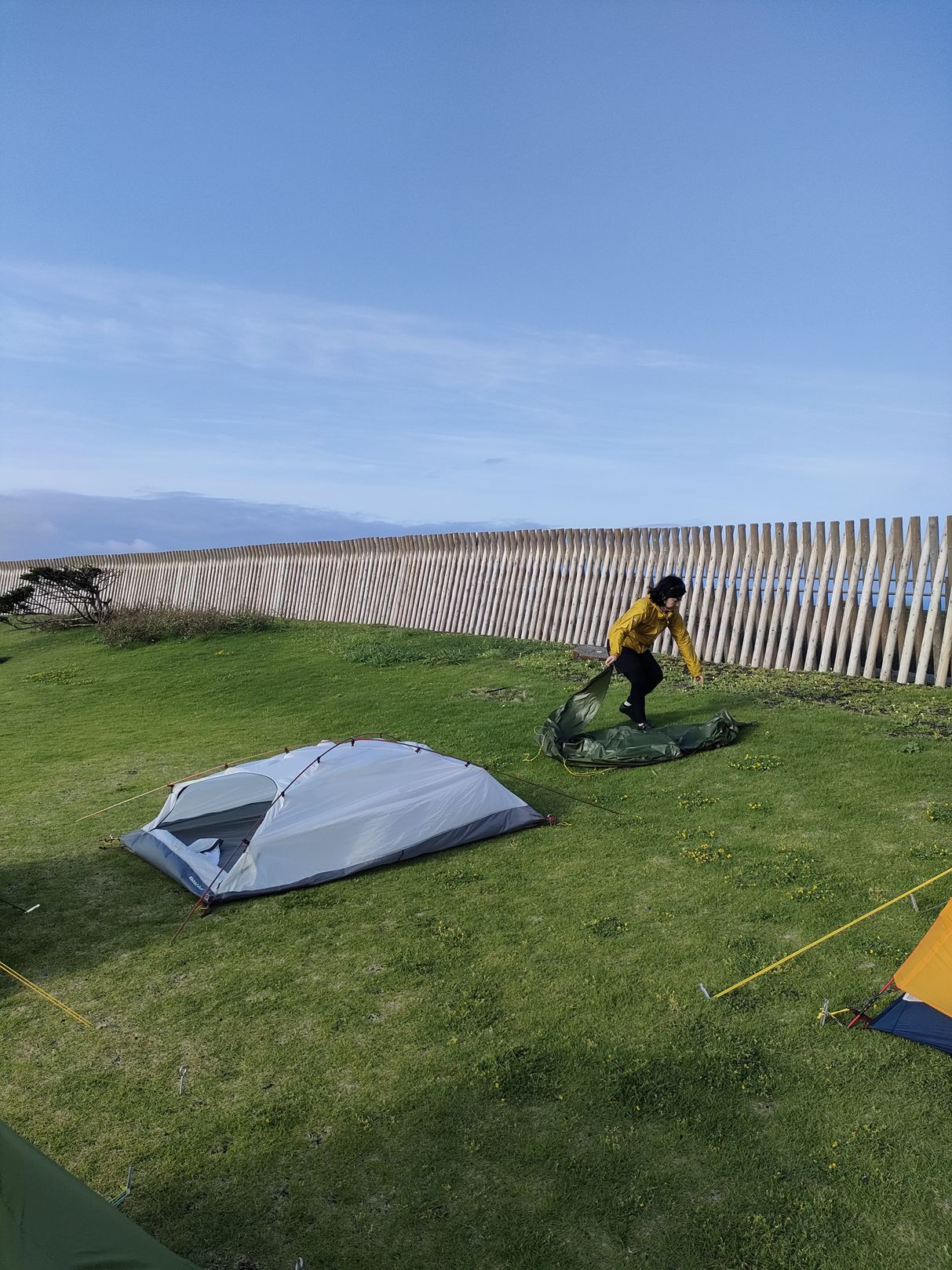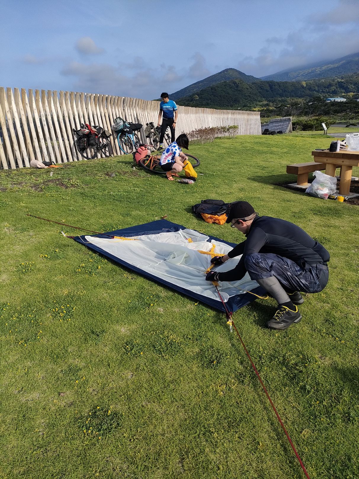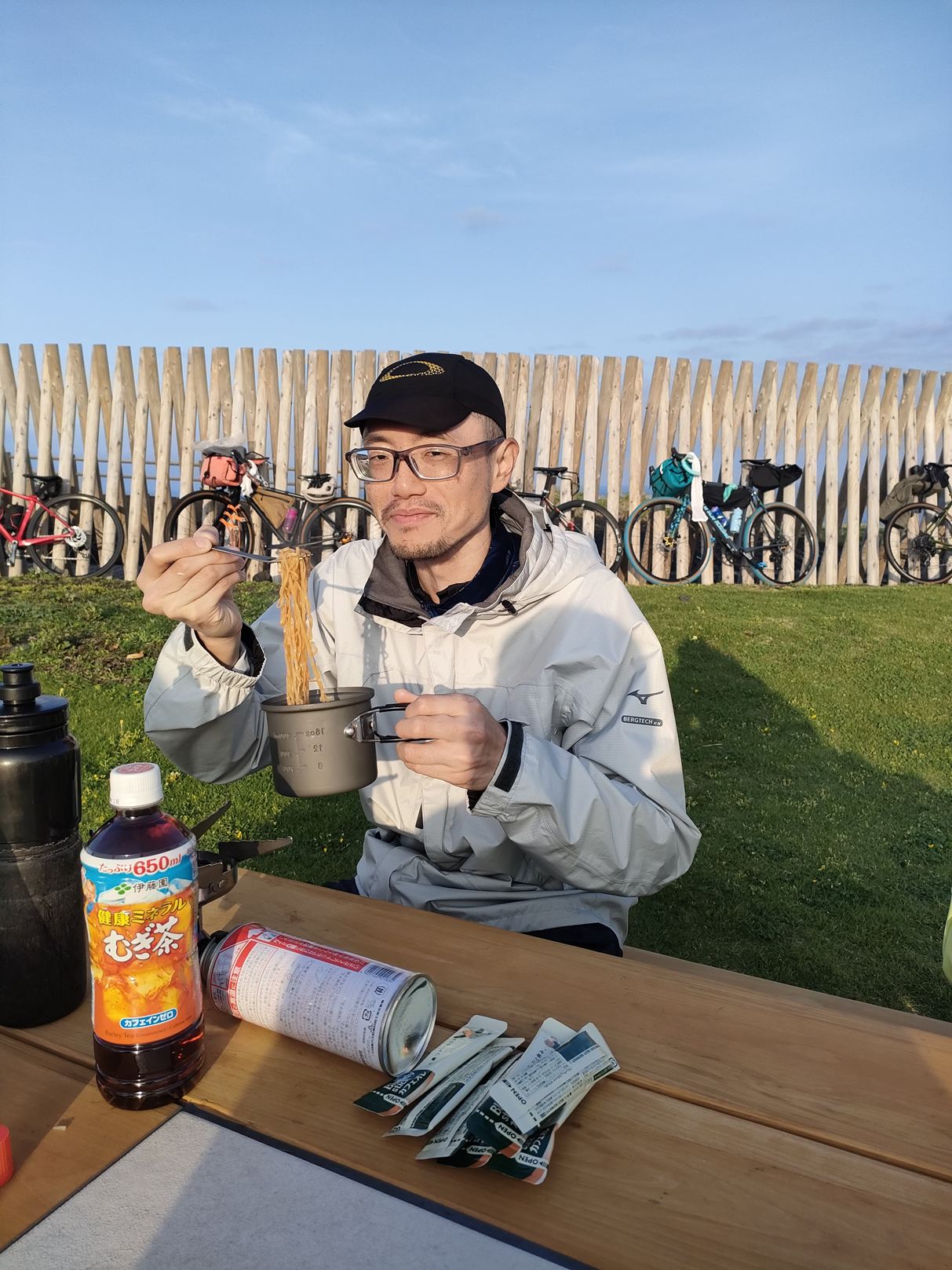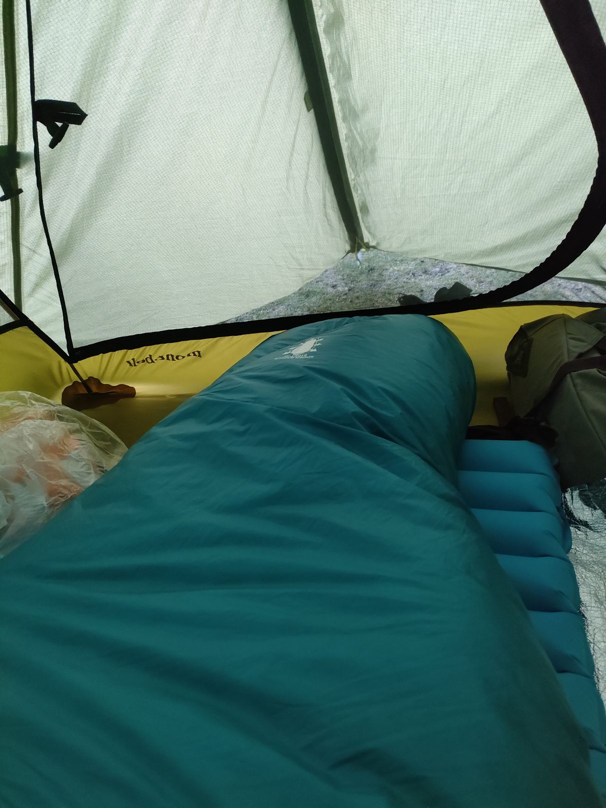 私の使用したテントは真夏用の総メッシュテントでありまして、朝方、すこし寒かったのであります。