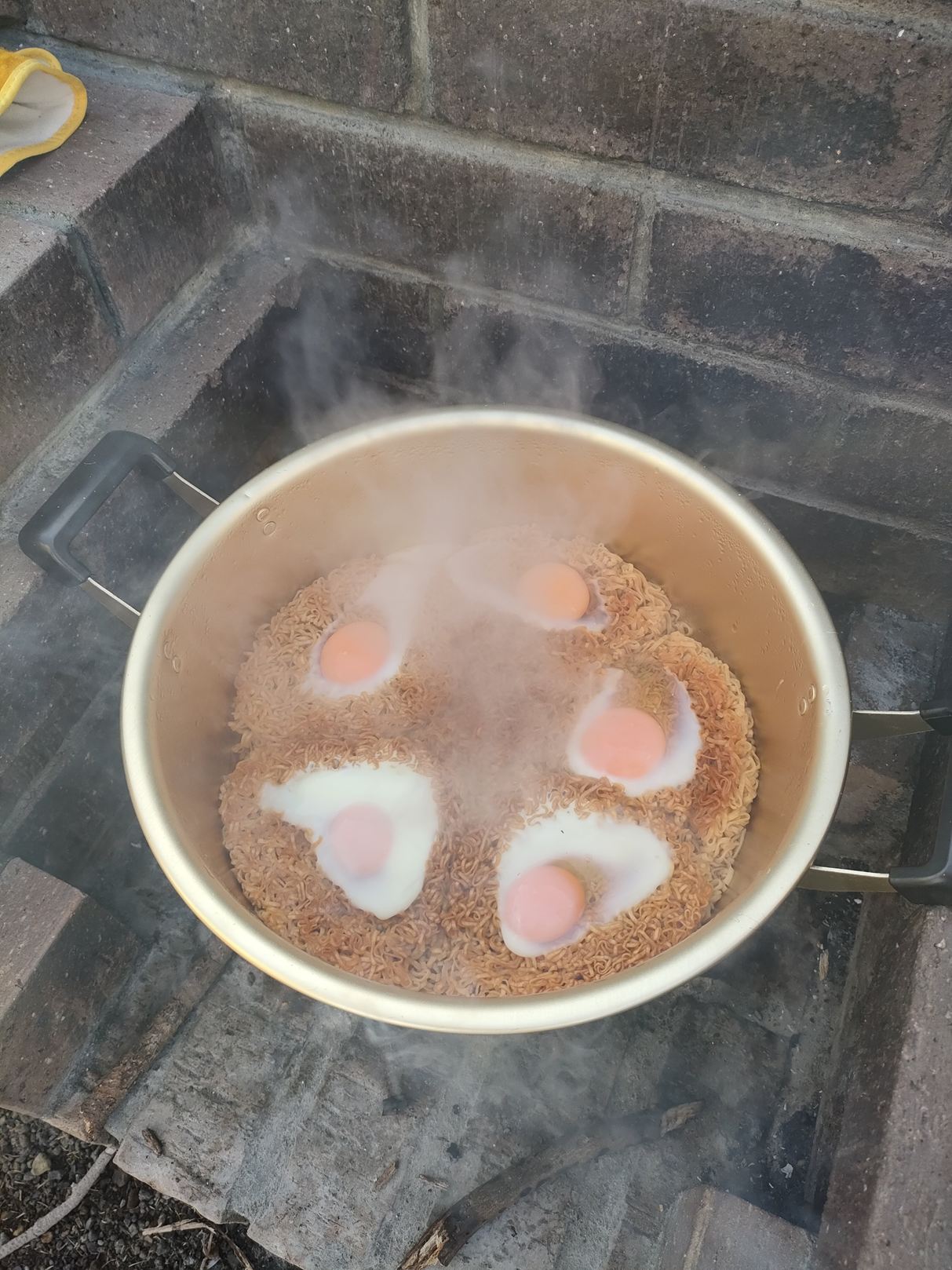出発予定時刻まで、あまり時間が無く、チキンラーメンに卵を入れるという、極めて簡素なお食事に致します。