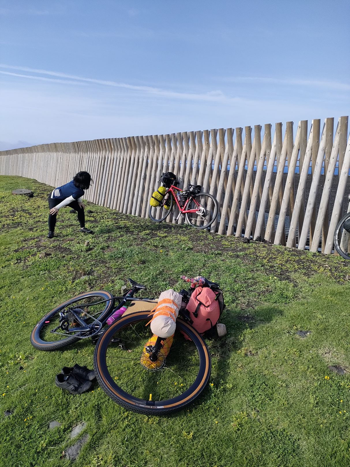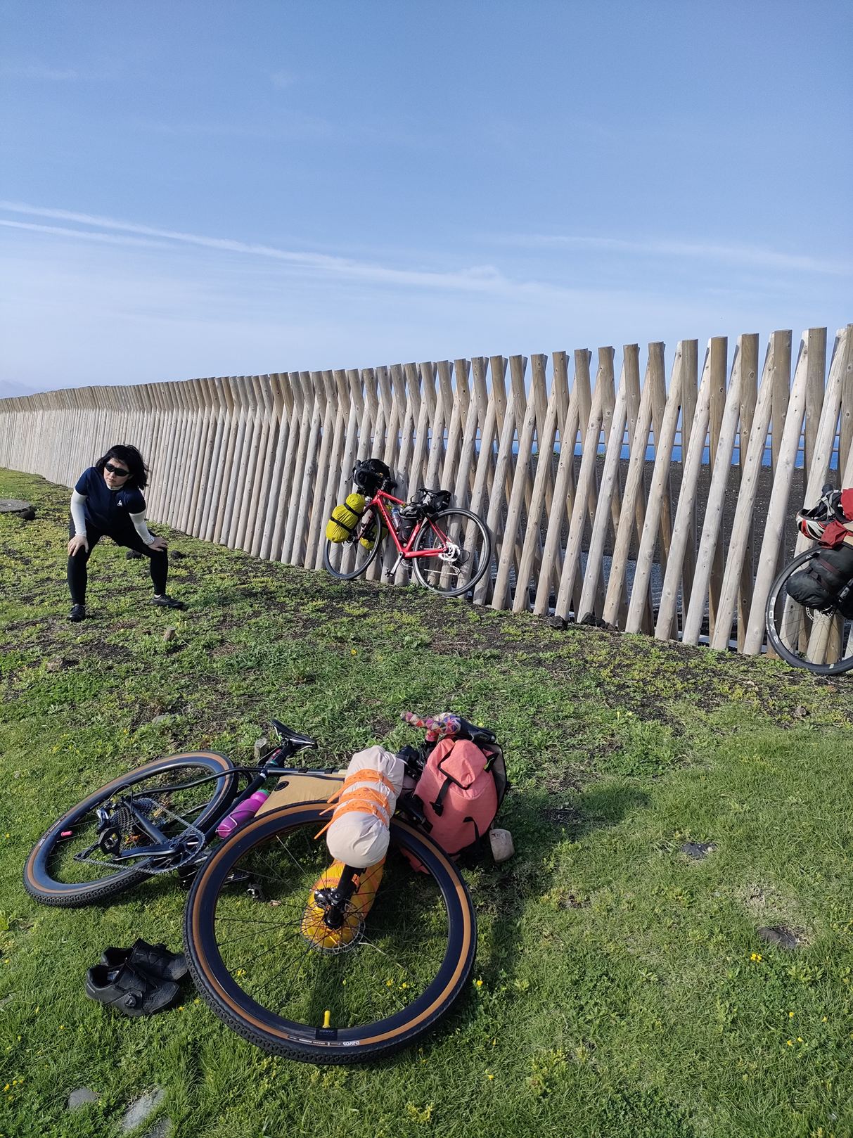 片付けたアイテム類をロードバイクに積載していきます。