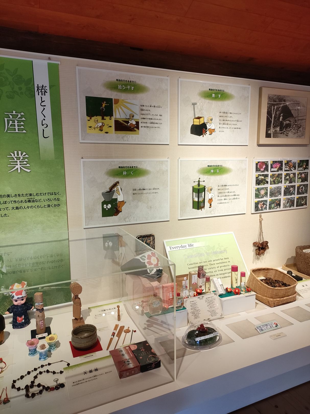まず、大島の特産物である、椿の展示を拝見しました。