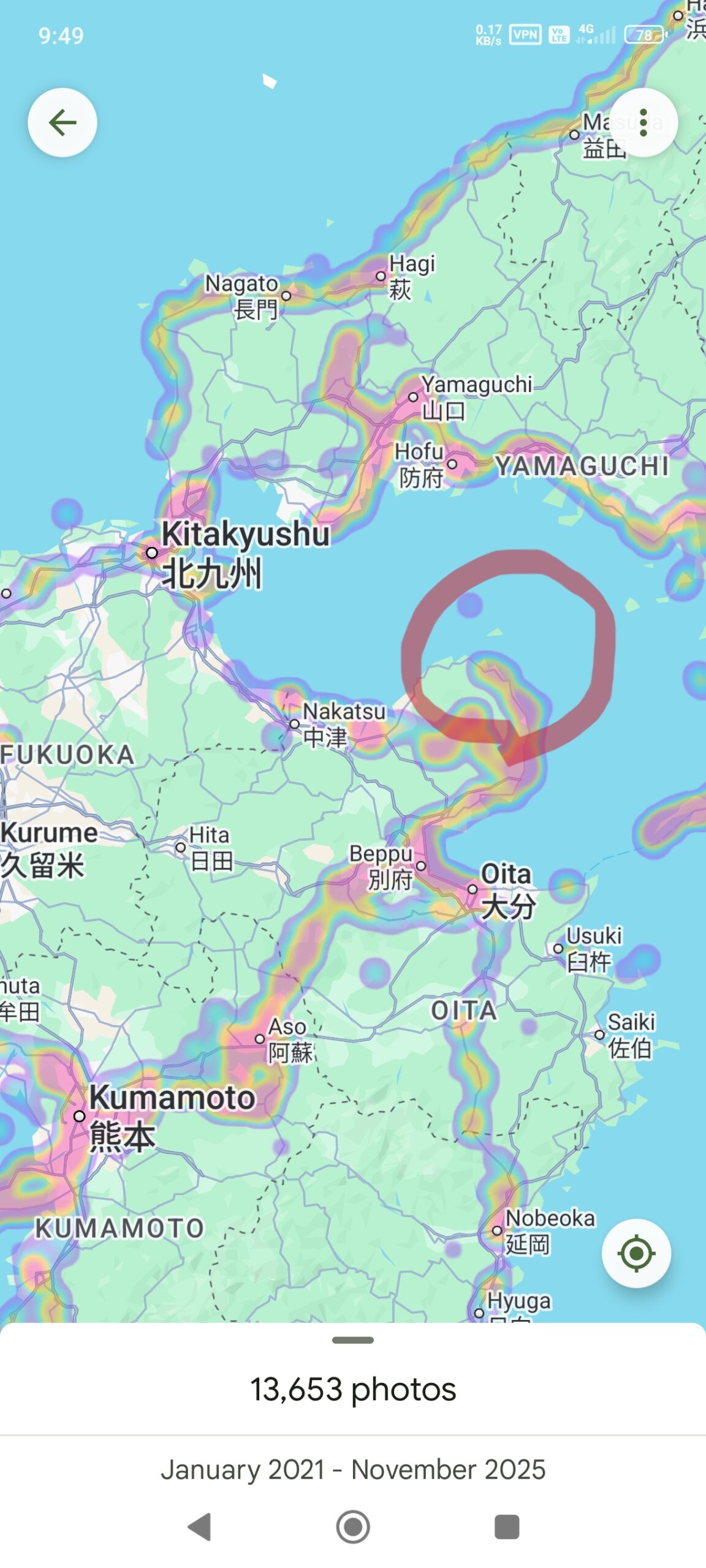 国東(くにさき)半島、丸で囲ったあたりが事故現場です