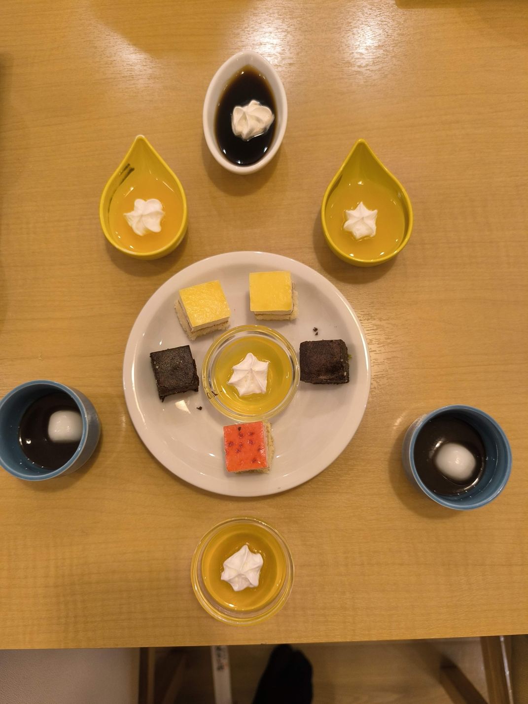 デザートのお皿を使って、艦隊陣形ごっこをしました。
