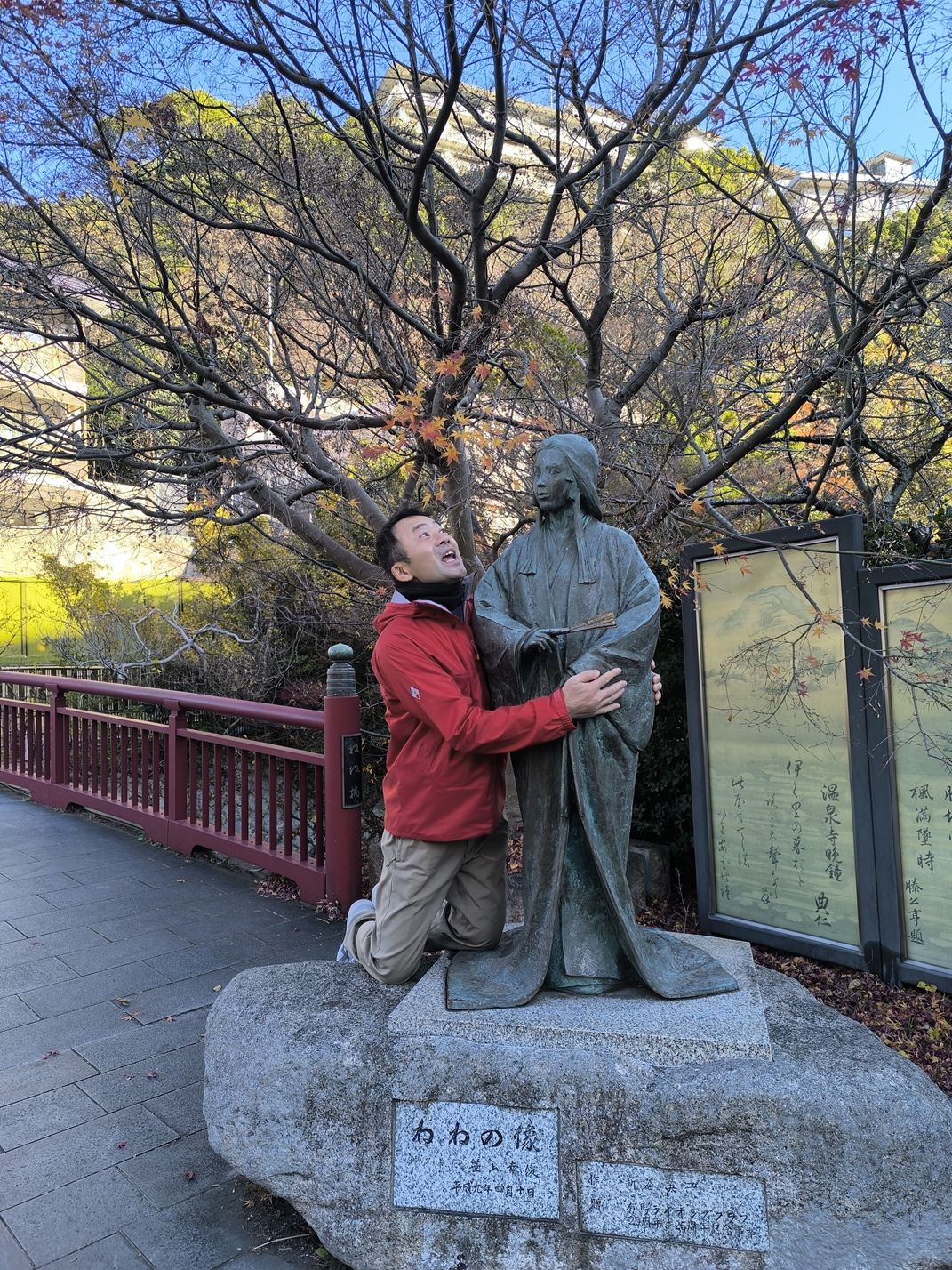 地元ガイドさんのご説明によると、ねね像と秀吉像は300mほど離れた距離にありますが、お互いの目線が合っている。。。とのことであります。