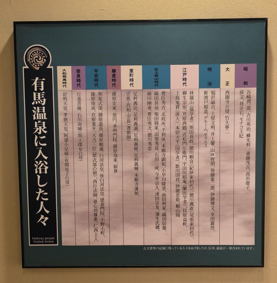 有馬温泉は効能が高いだけでなく、京都から比較的近い、という理由もあったと思われ、時の権力者、政治家、文人たちが多く立ち寄っています。