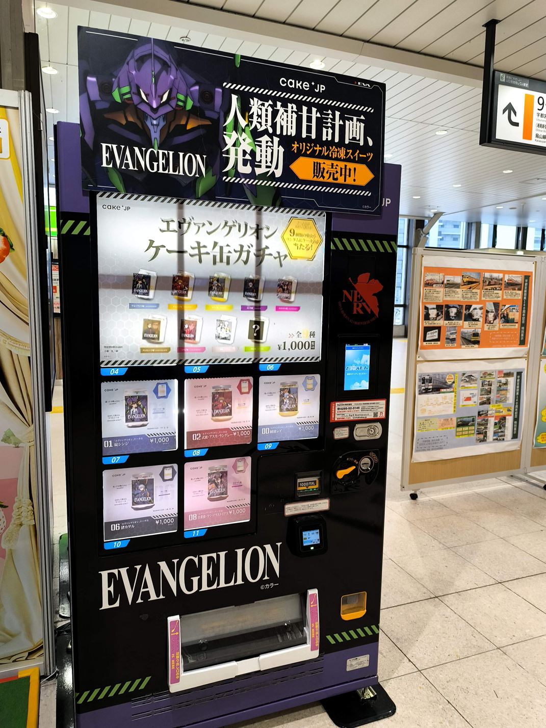 エヴァンゲリオンさんのケーキ缶自動販売機です。