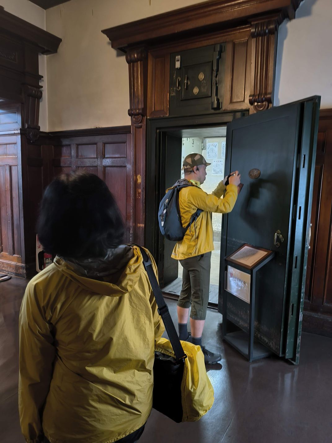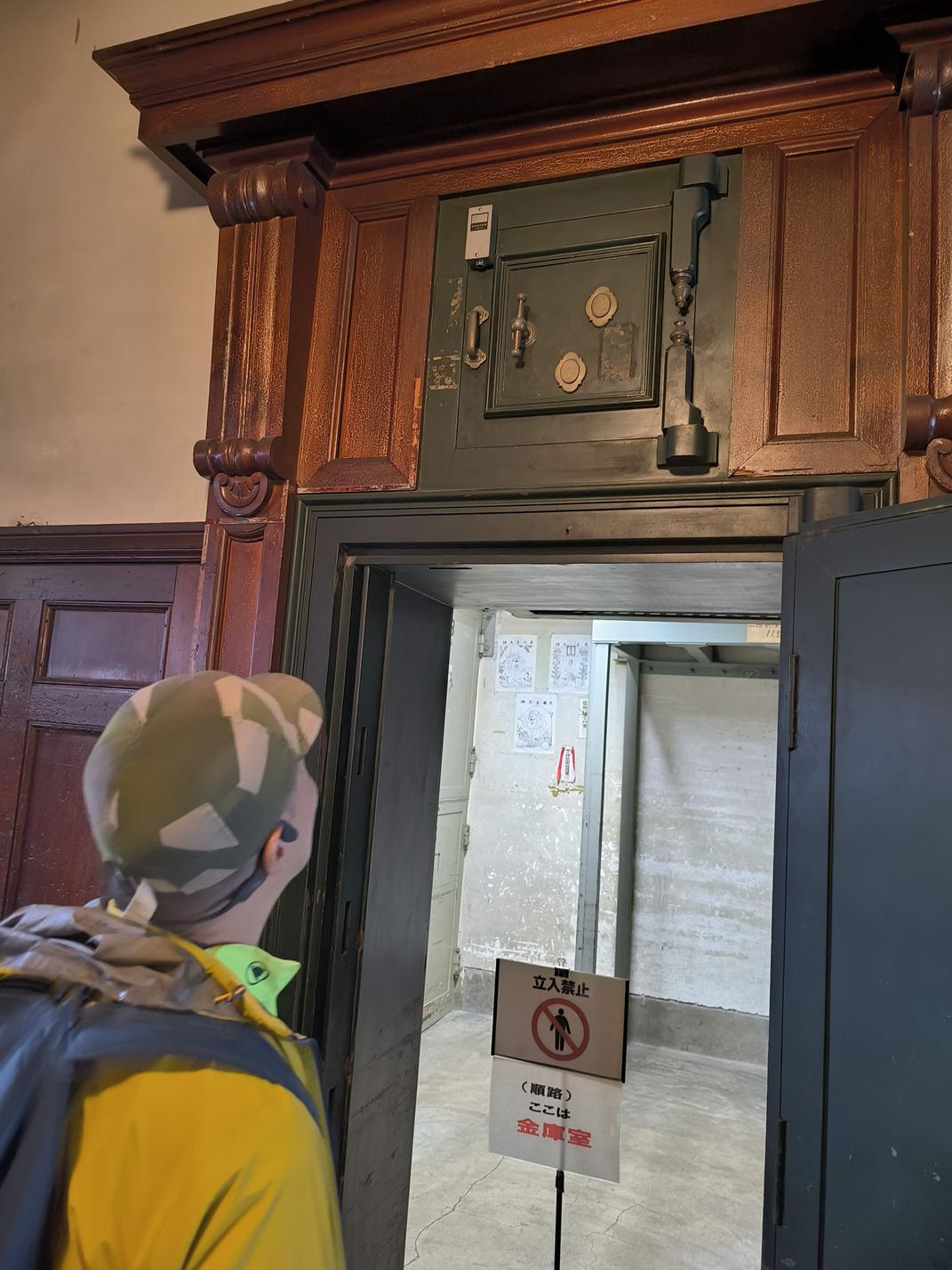 金庫室の上にある、小さな扉は、金庫内に閉じ込められてしまったときの脱出口だそうです。