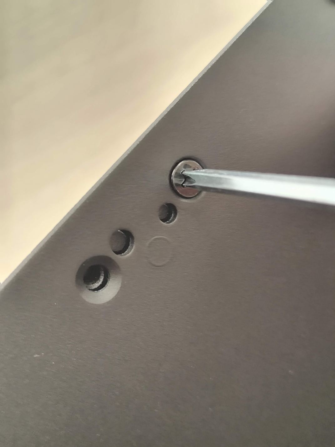 当然ながら、ただのプラスねじですから、付属の簡易工具をお使いになっても、手持ちのブラスドライバーをお使いになっても固定可能です。