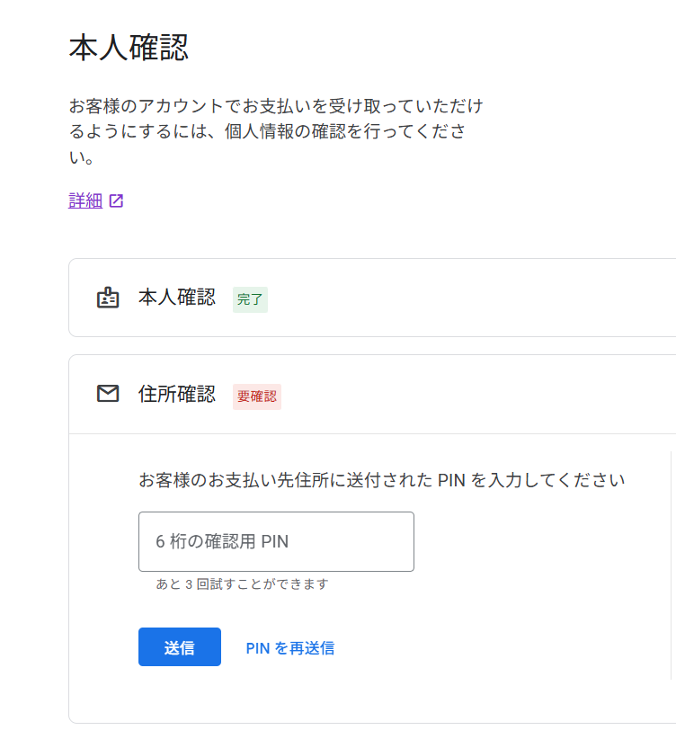 Google AdSense管理画面に戻って、郵便で通知された確認用PINコードを入力します。