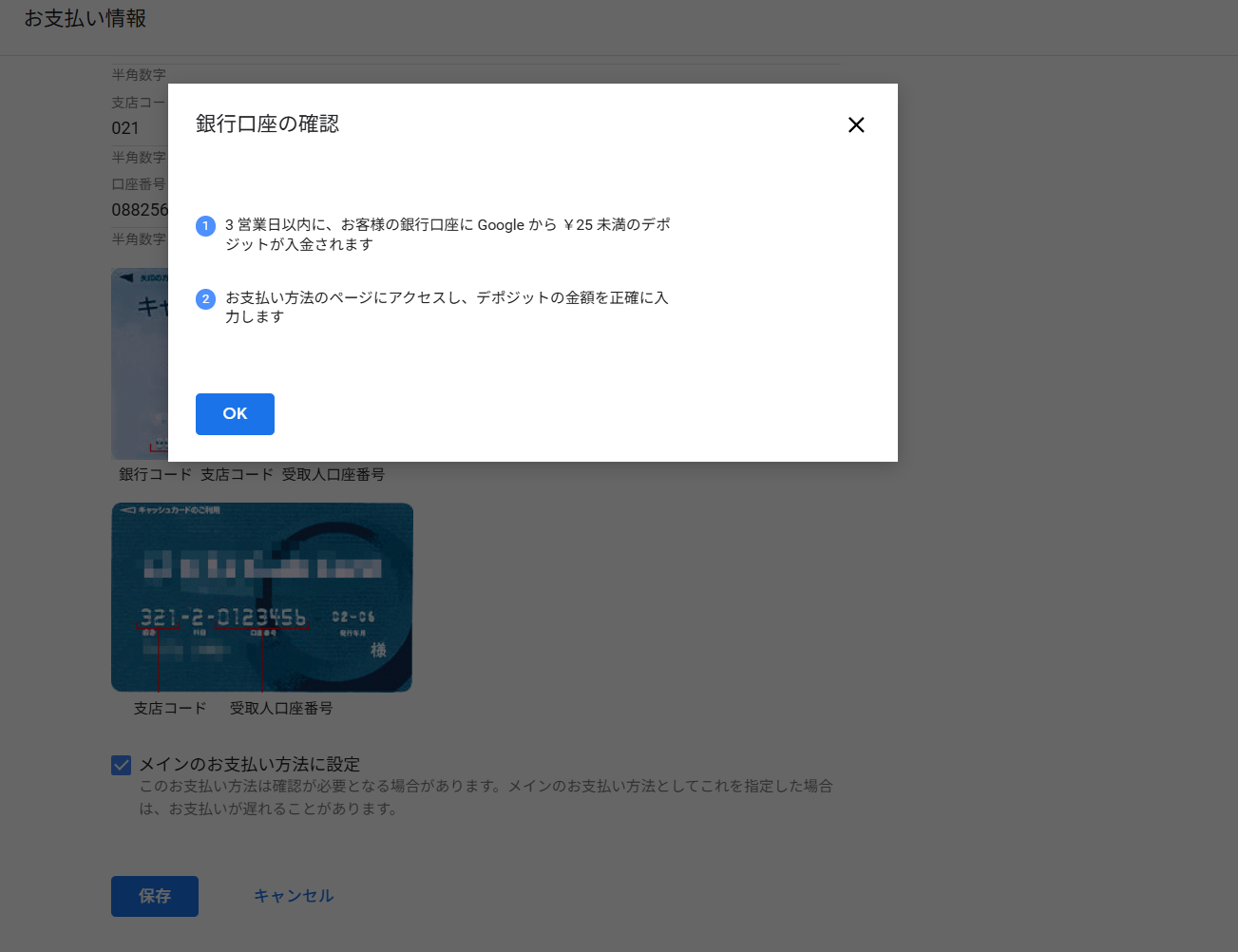 なるほど、入金された金額を入力すれば、口座の正当性が認証される、ということですね。