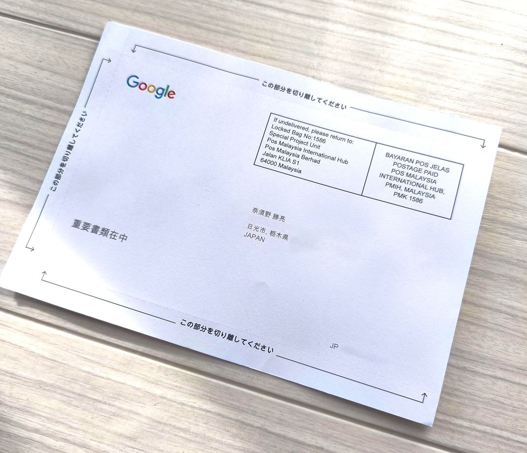 Googleというwebの会社を相手に、紙という有体物でやりとりするのが新鮮です。