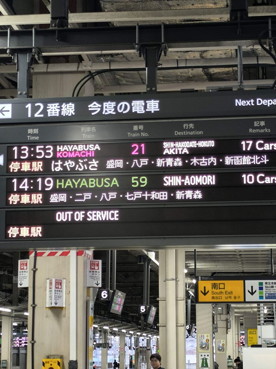 はやぶさ号に乗って、北海道、新函館北斗に向かいます。