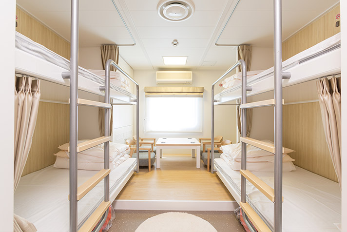 おすすめする船室は、特2等室か特1等室、特1等和室です。