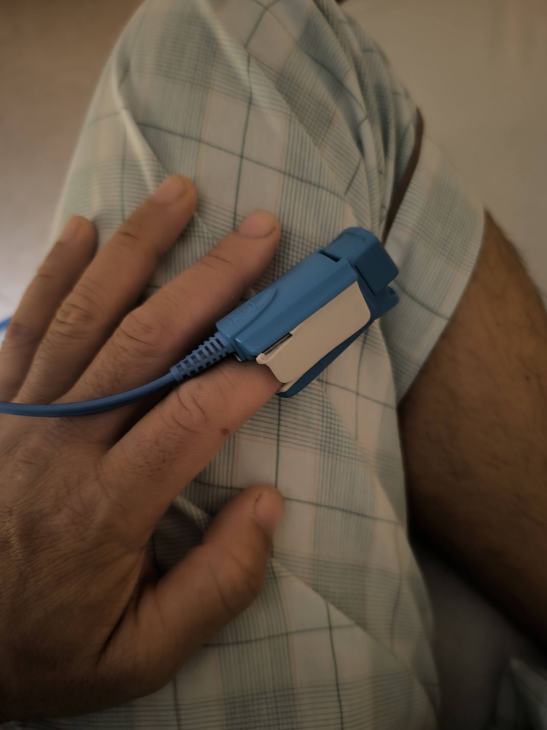 そして、指先に血中酸素濃度の計器を装着されました。