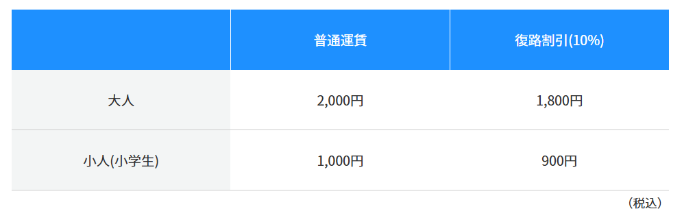 2026年1月現在では、片道¥2,000です。