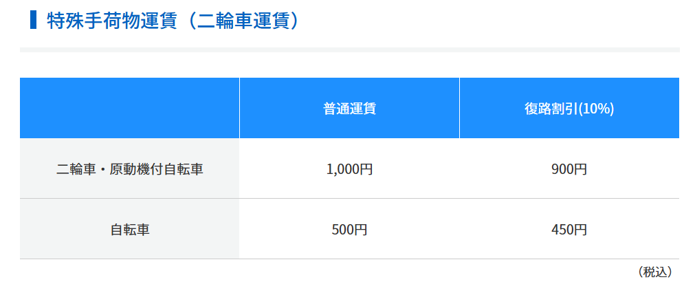 輪行袋に入れた状態であれば、運賃のみで積載が可能です。