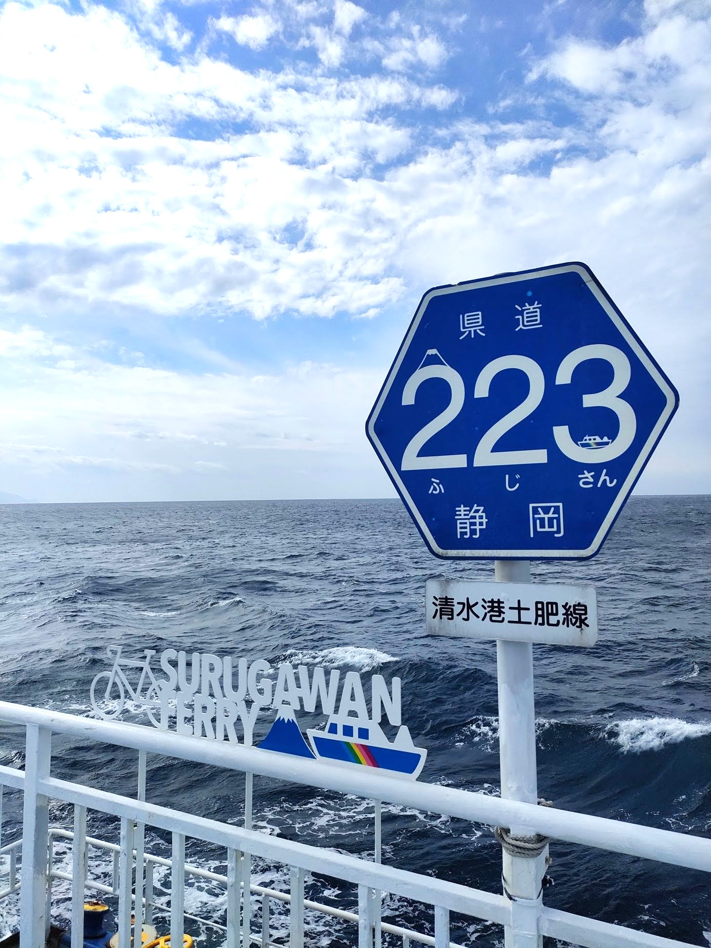 駿河湾フェリーの航行しているルートは、海上県道というもので、海の上が静岡県道223号線として指定されています。