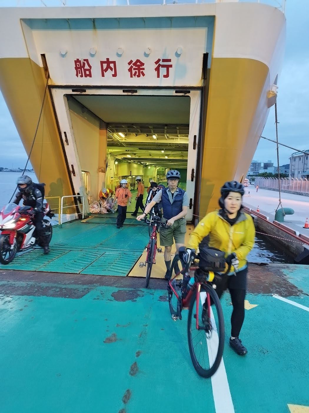 自動車も積載可能な大型フェリーであるため、ロードバイクは輪行状態にしなくても積載可能です。