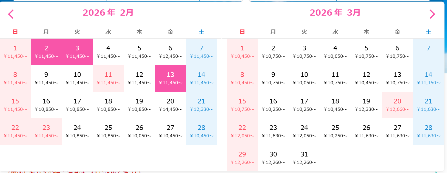 ご参考までに、さくらトラベルさんの検索結果を転載します。