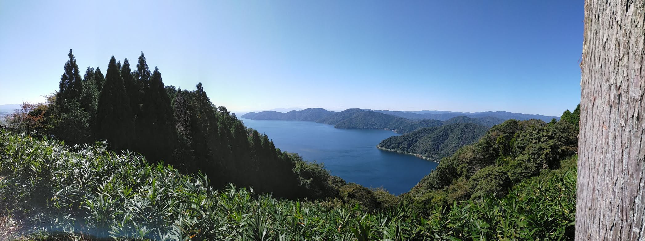 眼下には余呉湖という湖が広がります。