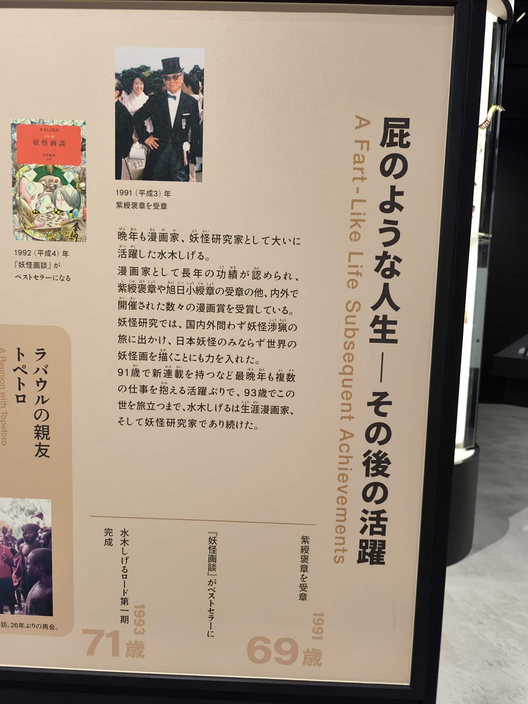 水木しげる記念館は、感動を覚えるほどの内容の深さ、水木しげるさんを知ることのできる素晴らしい展示で、訪れる価値があると考えます。