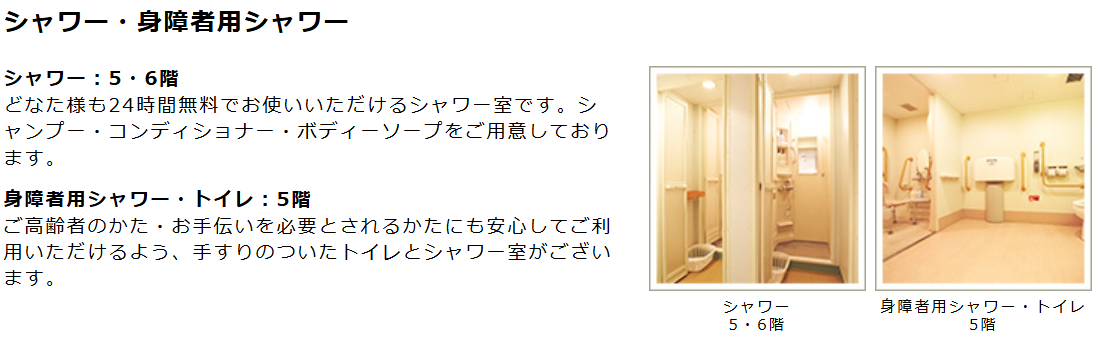 お風呂、シャワールーム完備、しかも無料