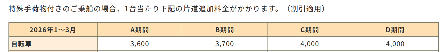 ロードバイクを完成車状態のまま積載する場合、別料金が必要です。