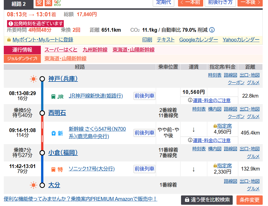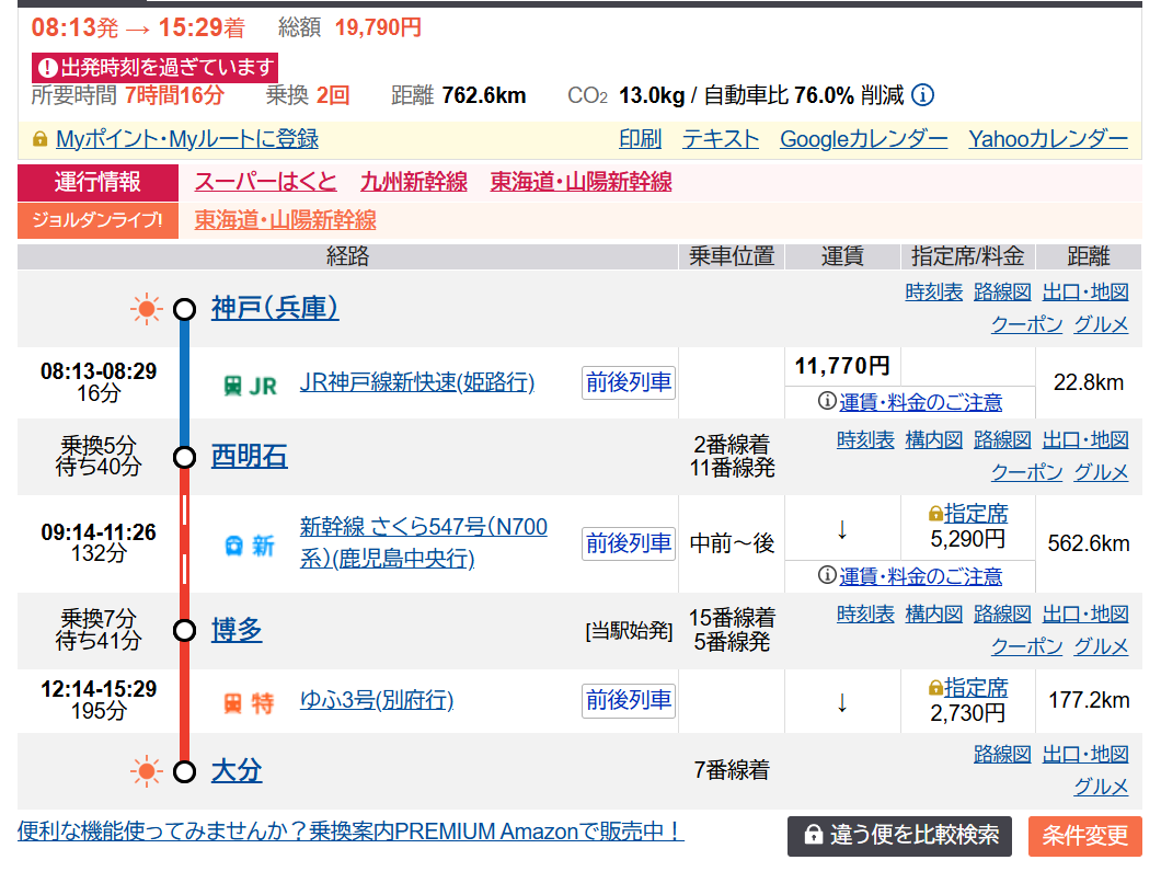 神戸(近畿)から大分(九州)なんて、新幹線で移動すればいいでしょう?とお思いでしょうか。