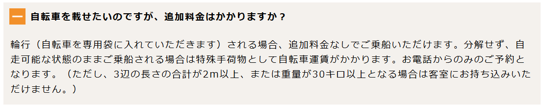 輪行状態でさんふらわあ号に積載している様子